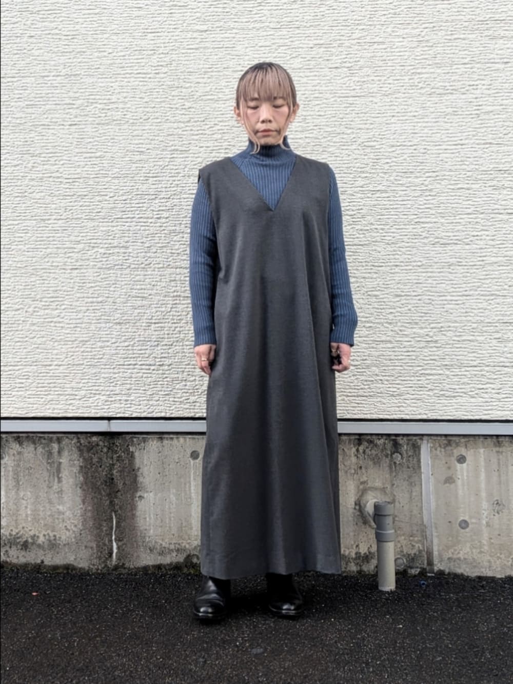 中に着たワンピースはサイズ展開があり、低身長に優しいアイテムです。