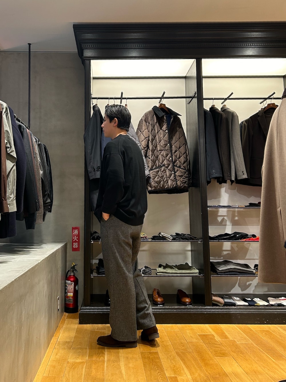 ゆとり感あるサイズを意識してカーディガン、パンツ共にLサイズを着用しています。