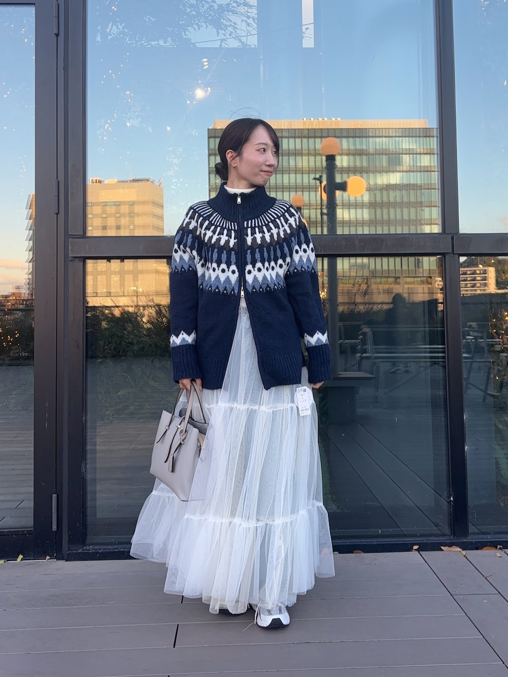ニットに、チュールスカートをレイヤードして、コーデを組んでみました!