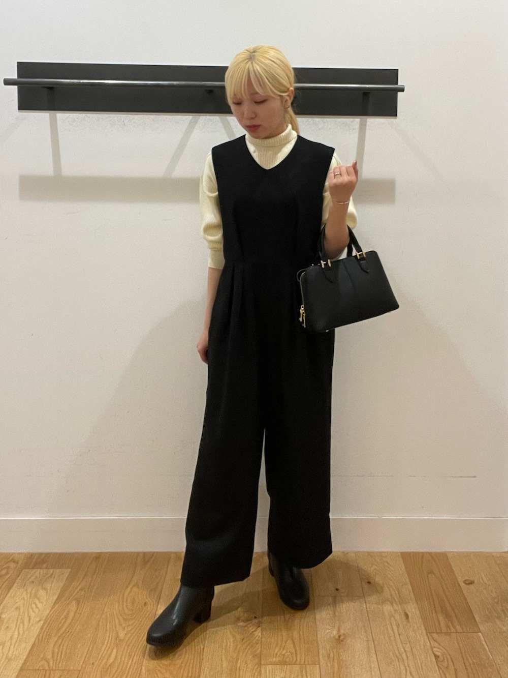 ウエストにタックや高めの位置に切り替えがあるので、自然にスタイルアップできるオールインワンです✨
