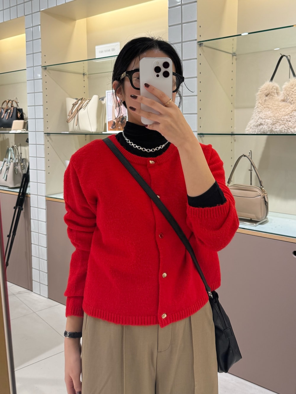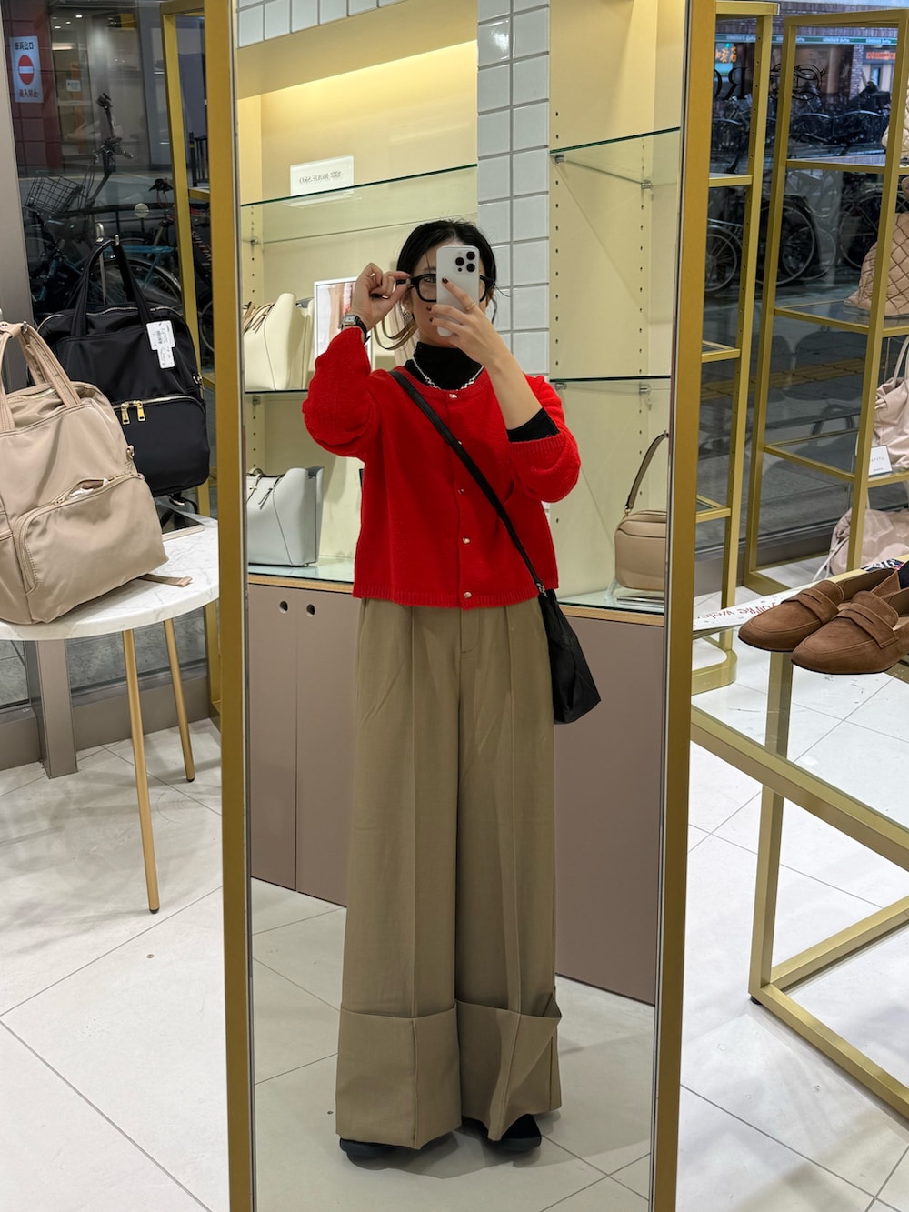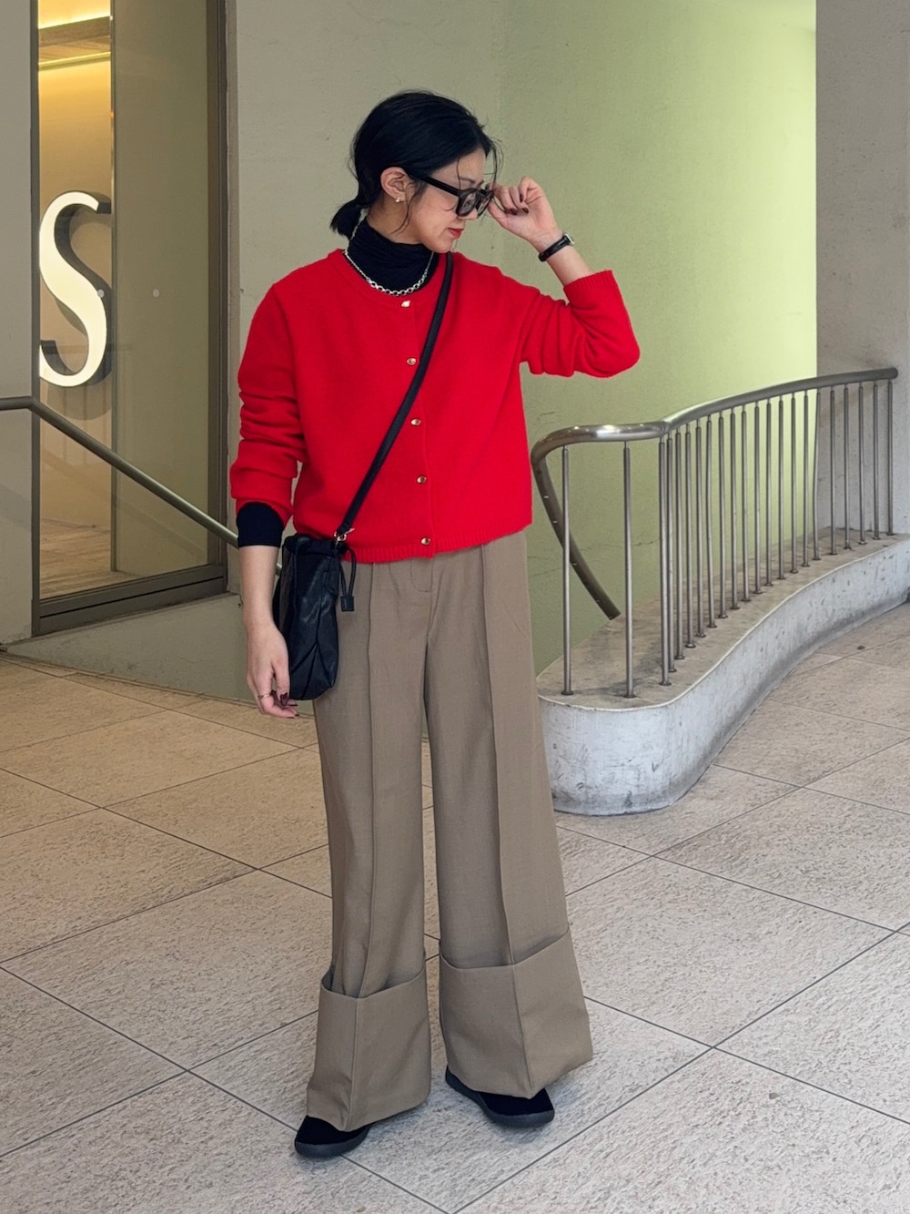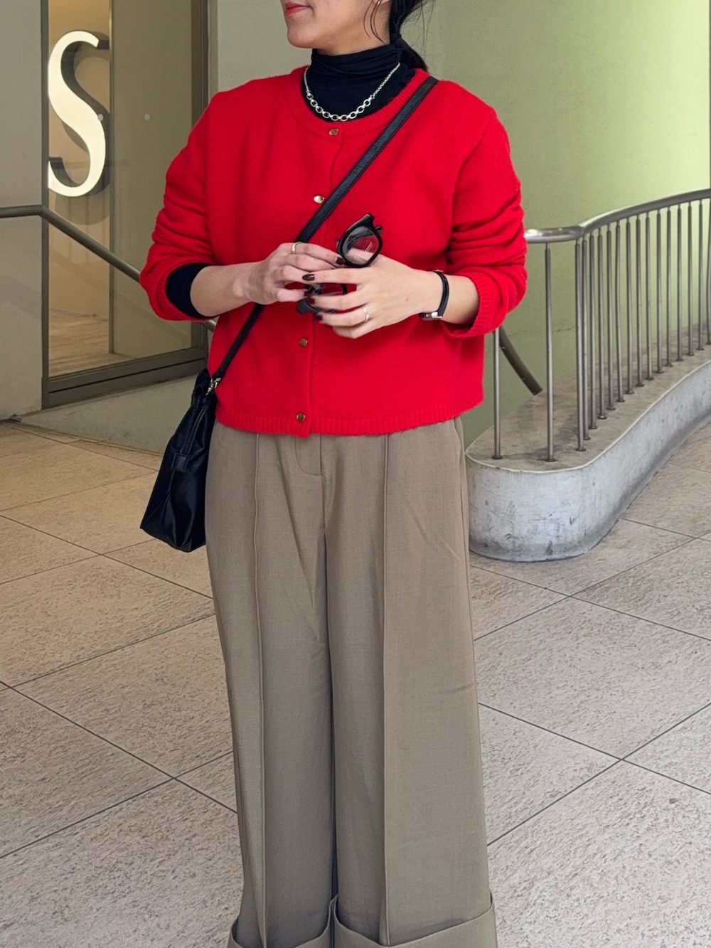 ぴったりな赤のニットカーディガン!