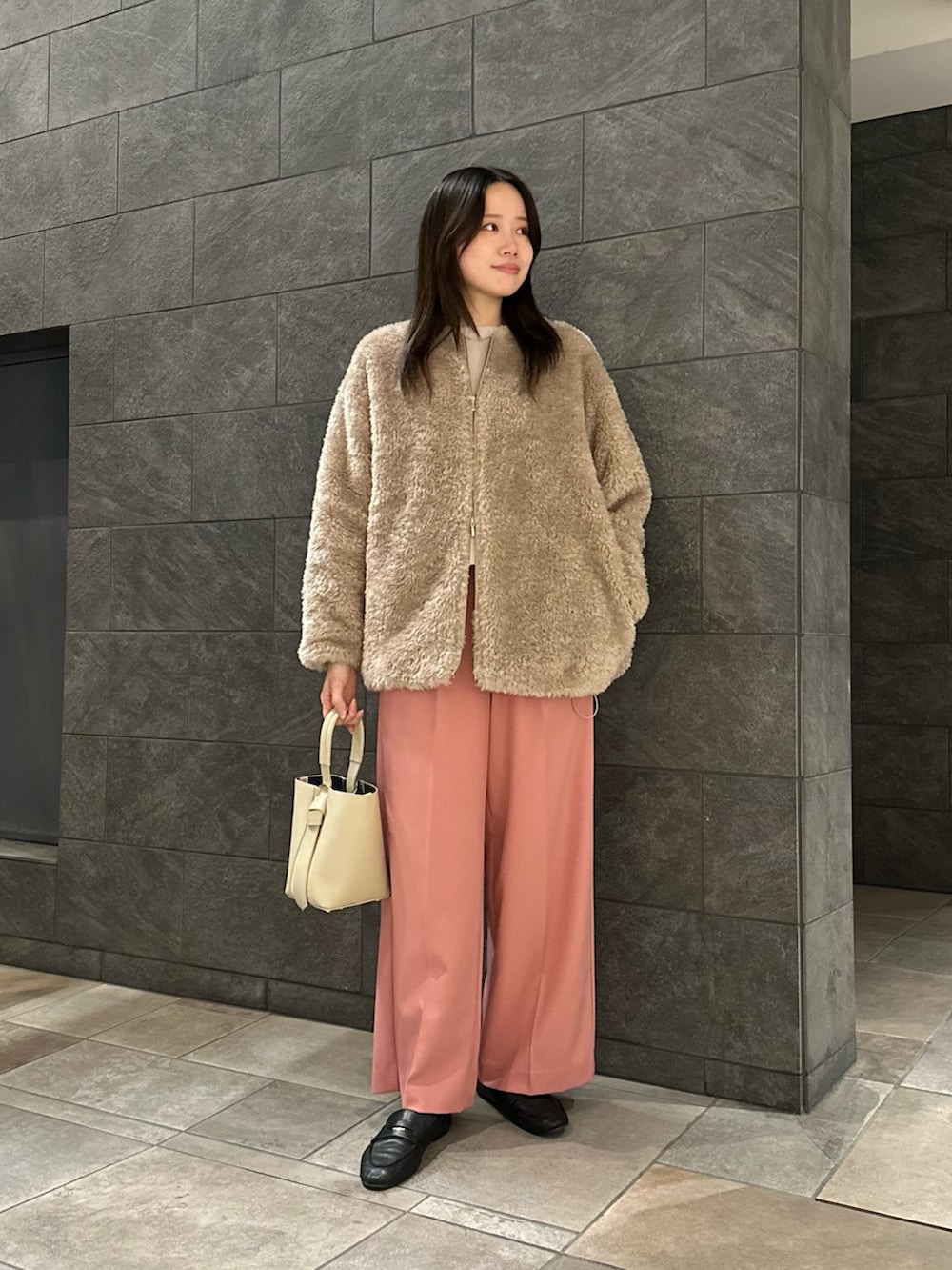甘くなりすぎず大人らしく着れるシルエットで、厚手のニットも着込めるサイズ感です◎