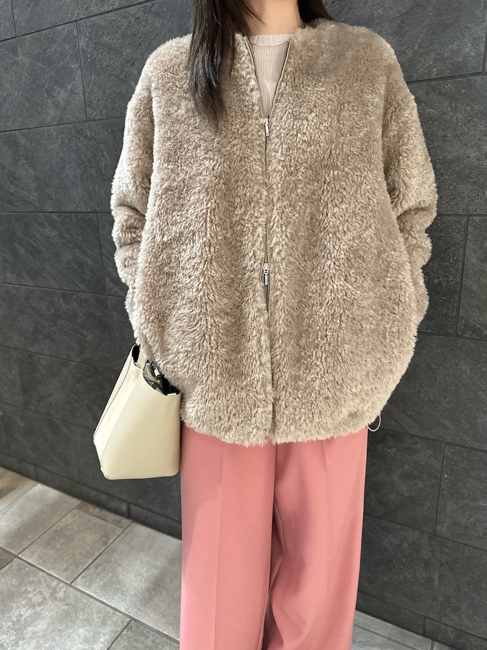 ROSSO『WEB/一部店舗限定』ノーカラーファーボアZIPブルゾン- カラー: