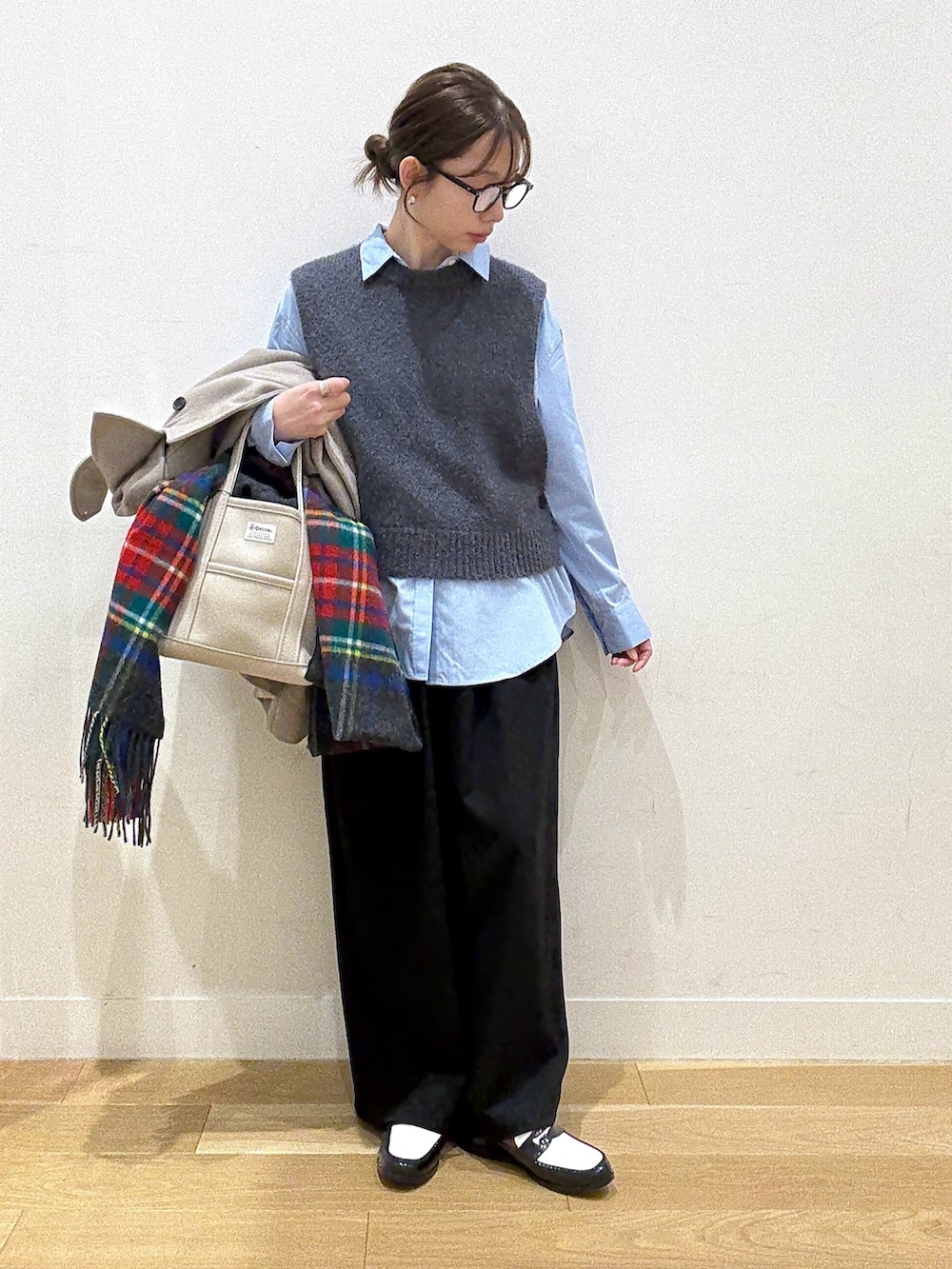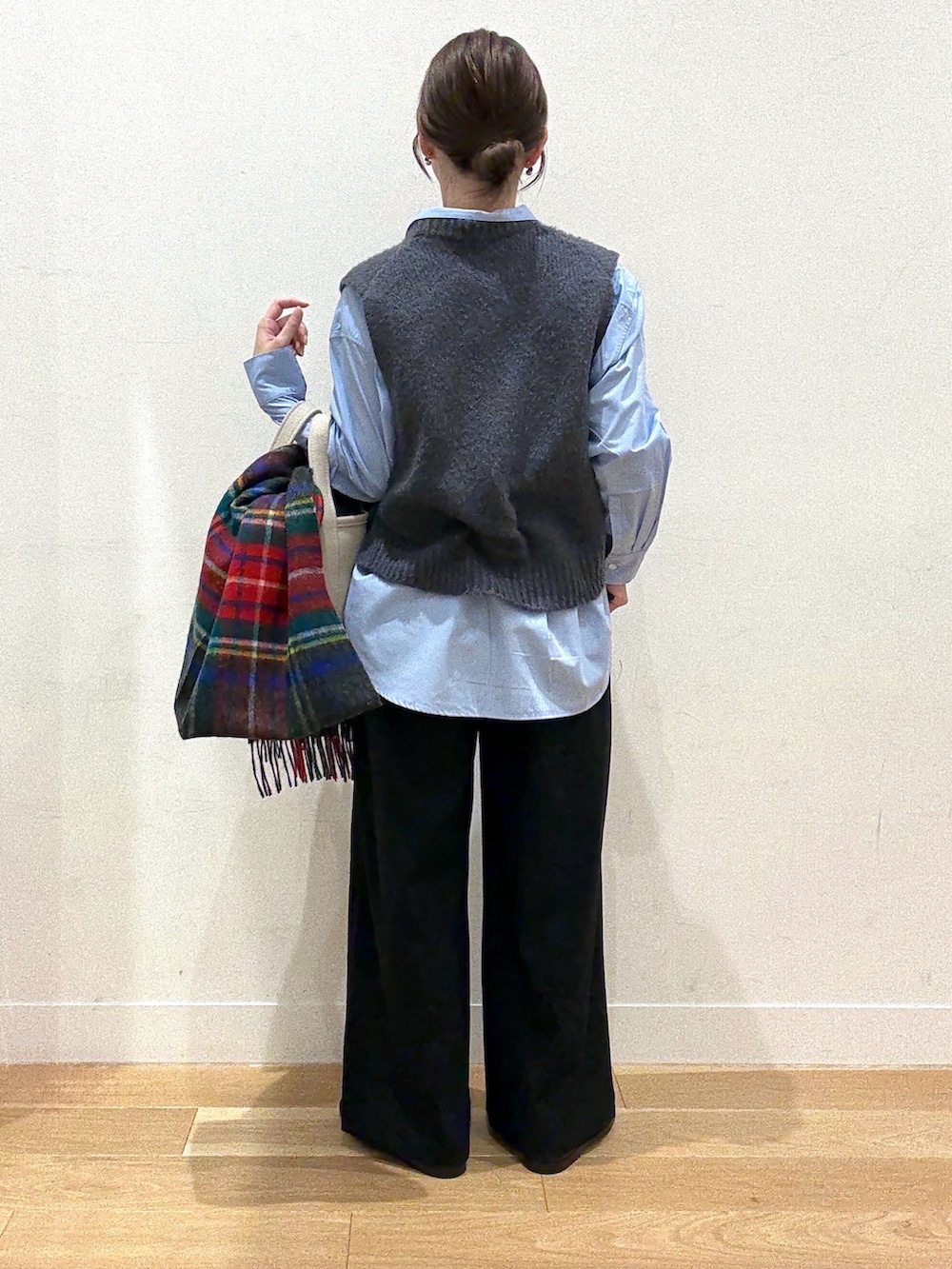 肩幅のある方でも華奢見えするデザインのベスト◎ベストは作業がしやすい上に、コートを着ても嵩張らずしっかり体幹は防寒できます👏