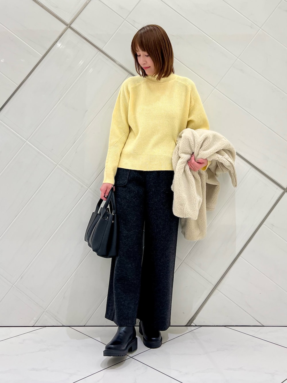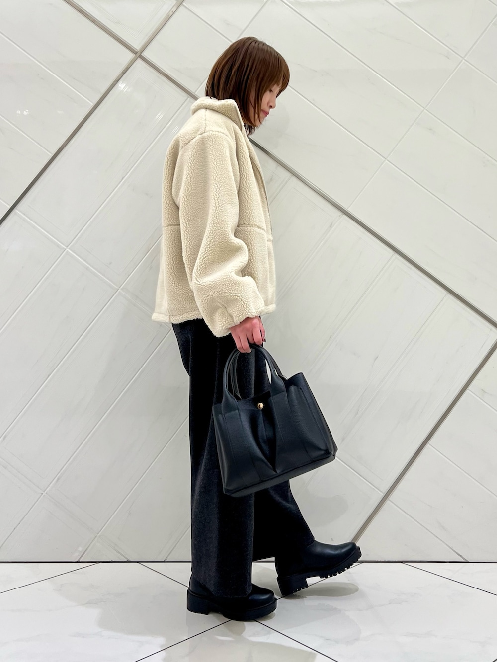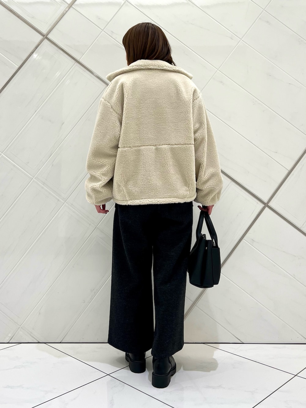 ふわふわのボアが可愛いアウターは袖口が