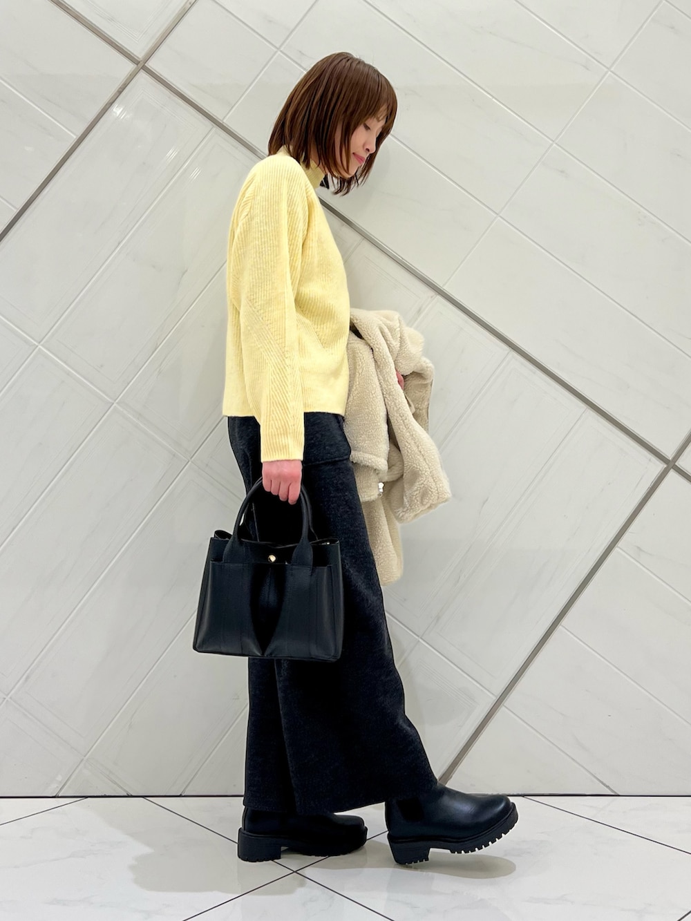 ゆったりしたシルエットで厚手のニットの