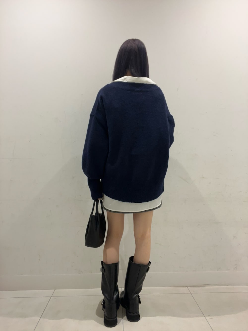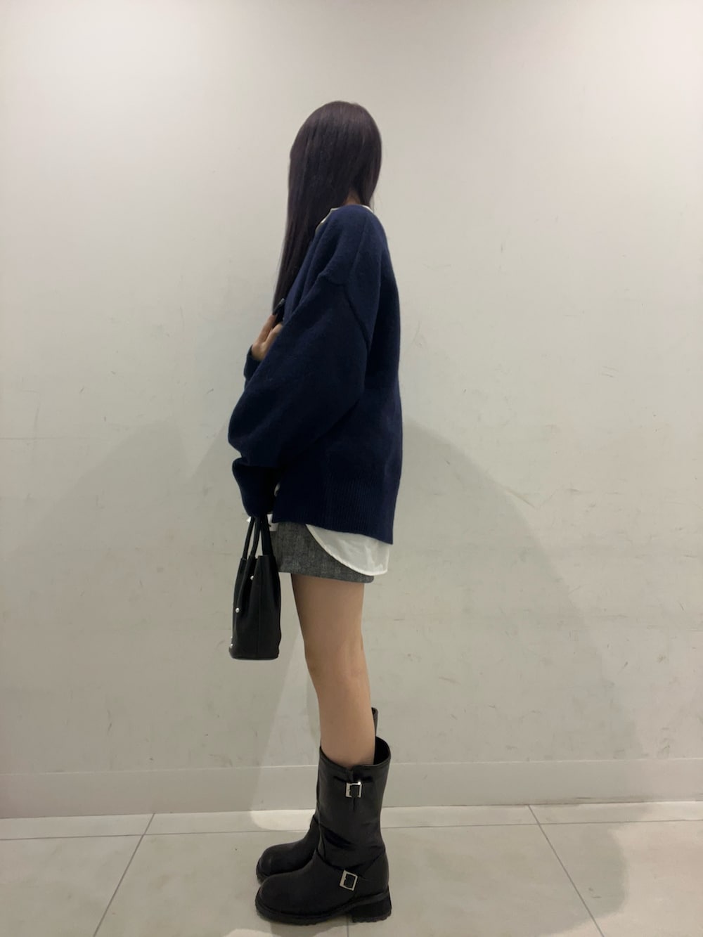 ゆるめのトップスとミニスカ、下はロングブーツでスタイル良く見えるようにしました♪