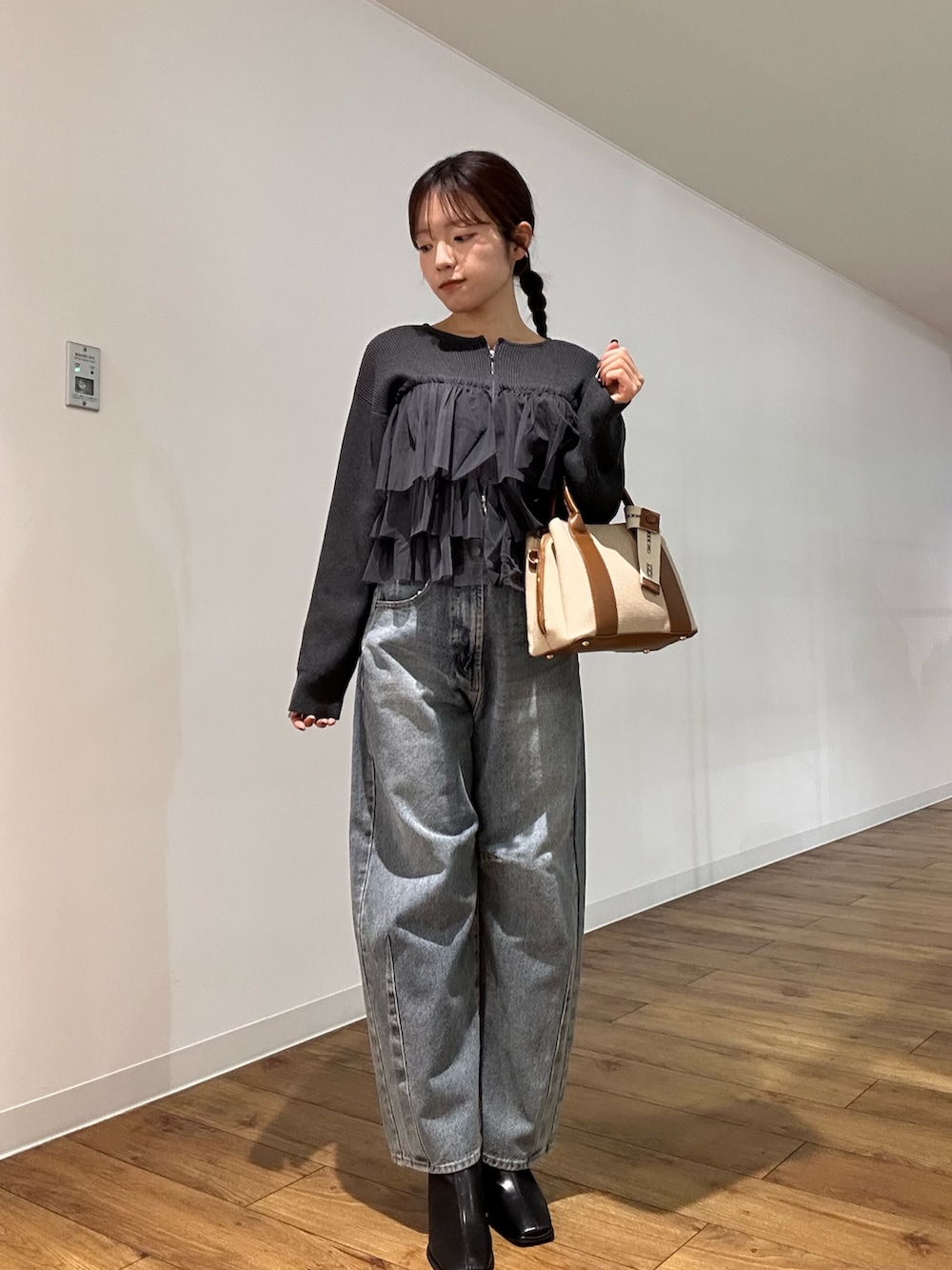 きれいめカジュアルがお好きな方はパンツやデニムのボトムと合わせていただくのがおすすめです^^
