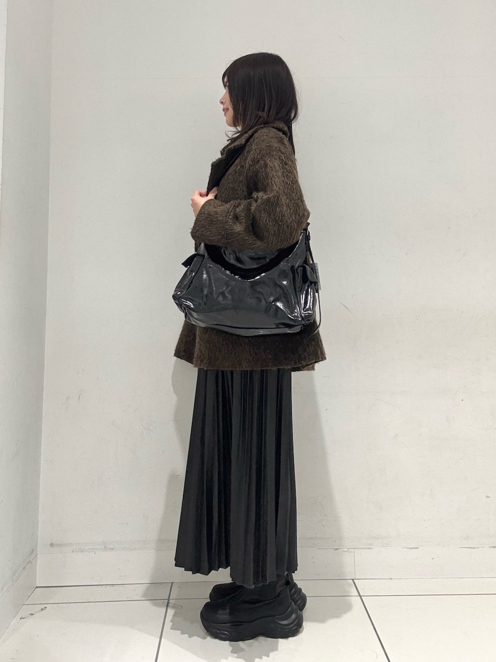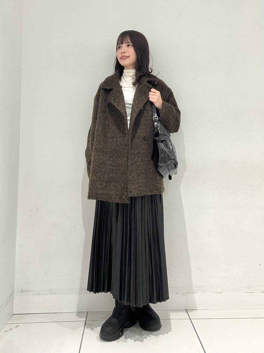 こちらのアウターは、羽織るだけで映えるシャギーコートになっております◎
