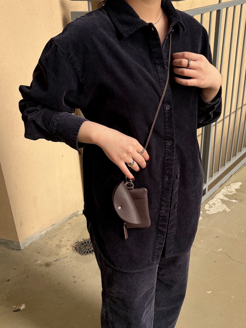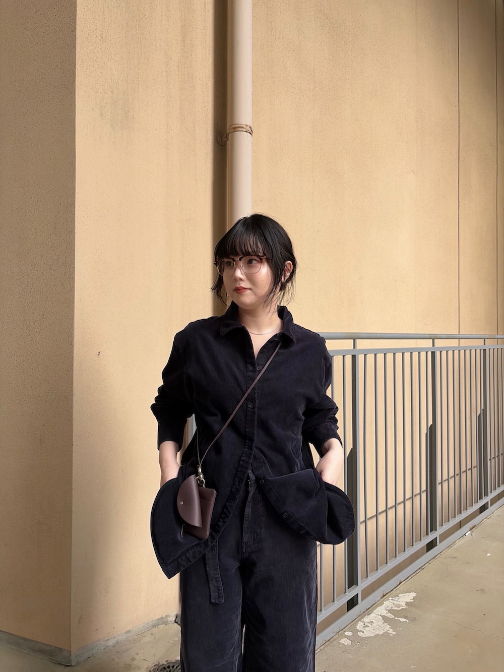 コーデュロイのシャツとパンツをセットアップで着てみました!パンツの太すぎないシルエットがバランスよく見せてくれるのでオススメです!