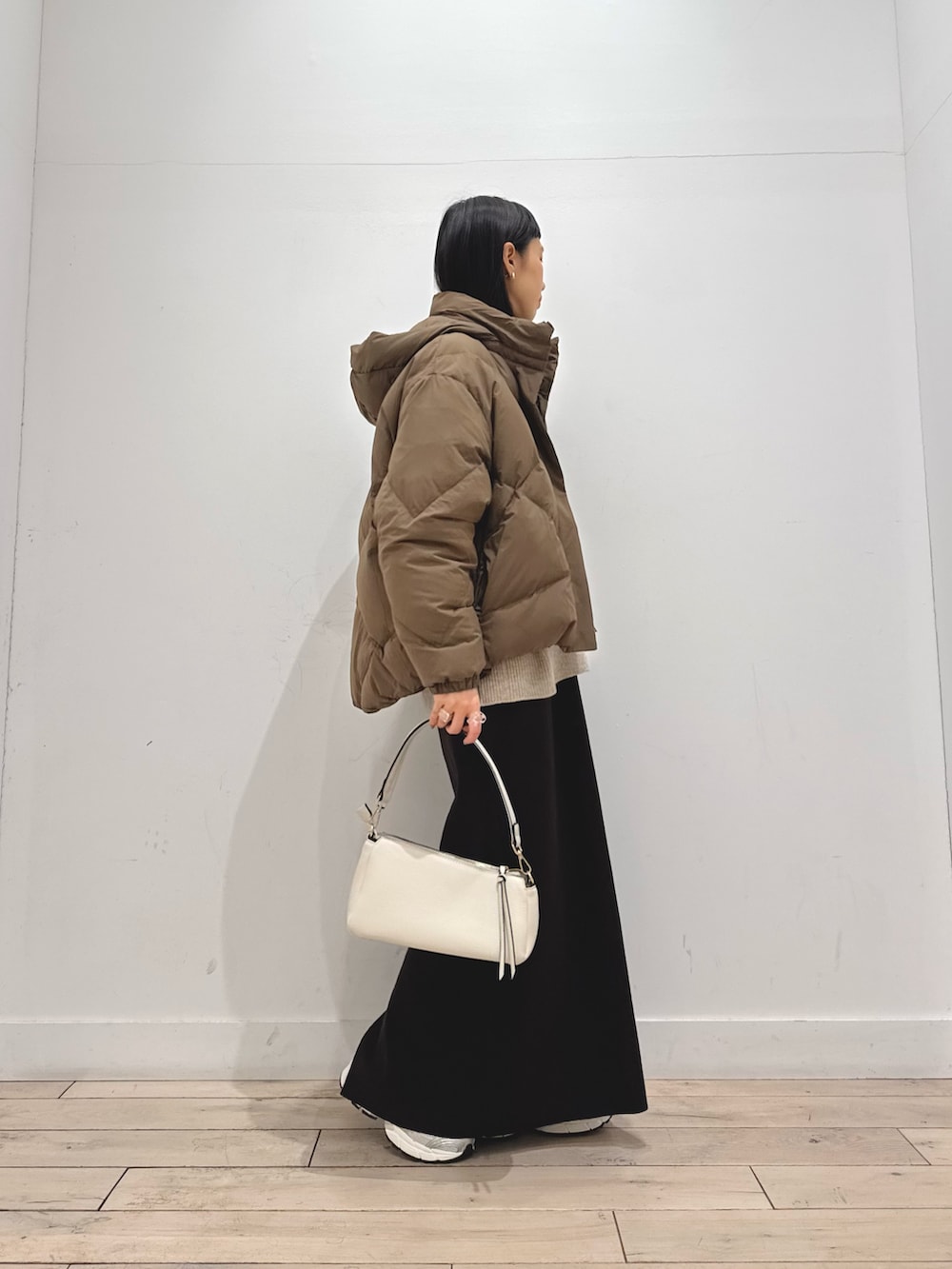 ダウンは前が短く、後ろが長くなっているのでボトムを選ばずバランスよく見せてくれます◎