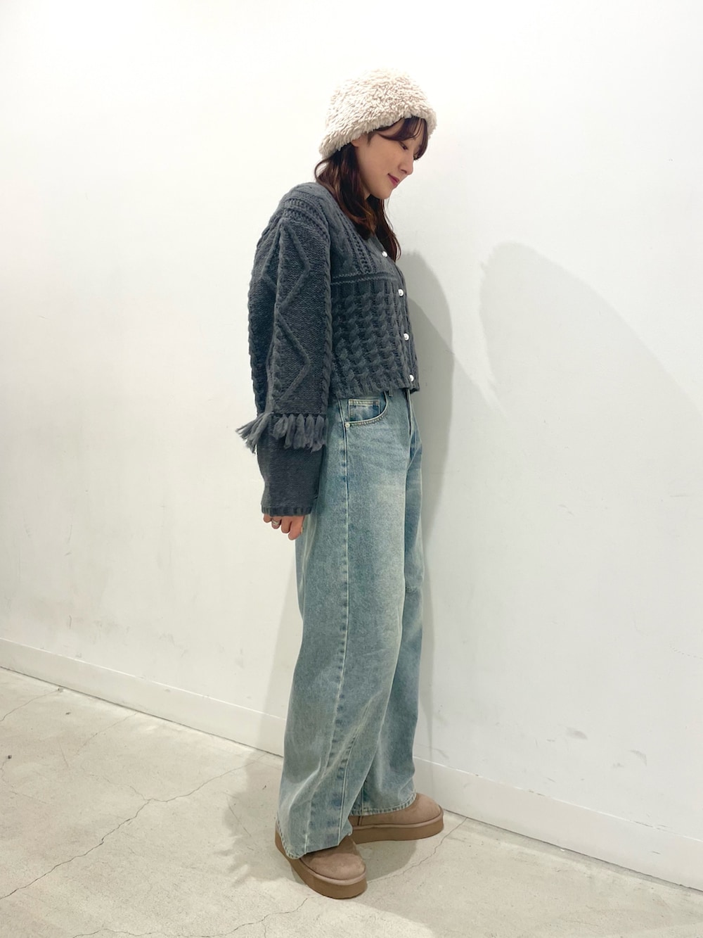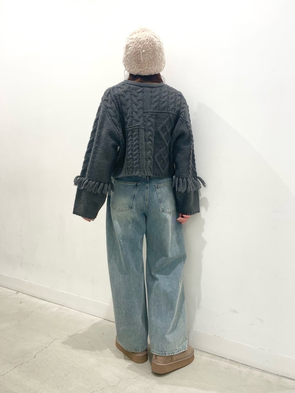 ケーブル編みが冬っぽいニットは太めな袖とフリンジが可愛すぎます⛄️🫶🏻