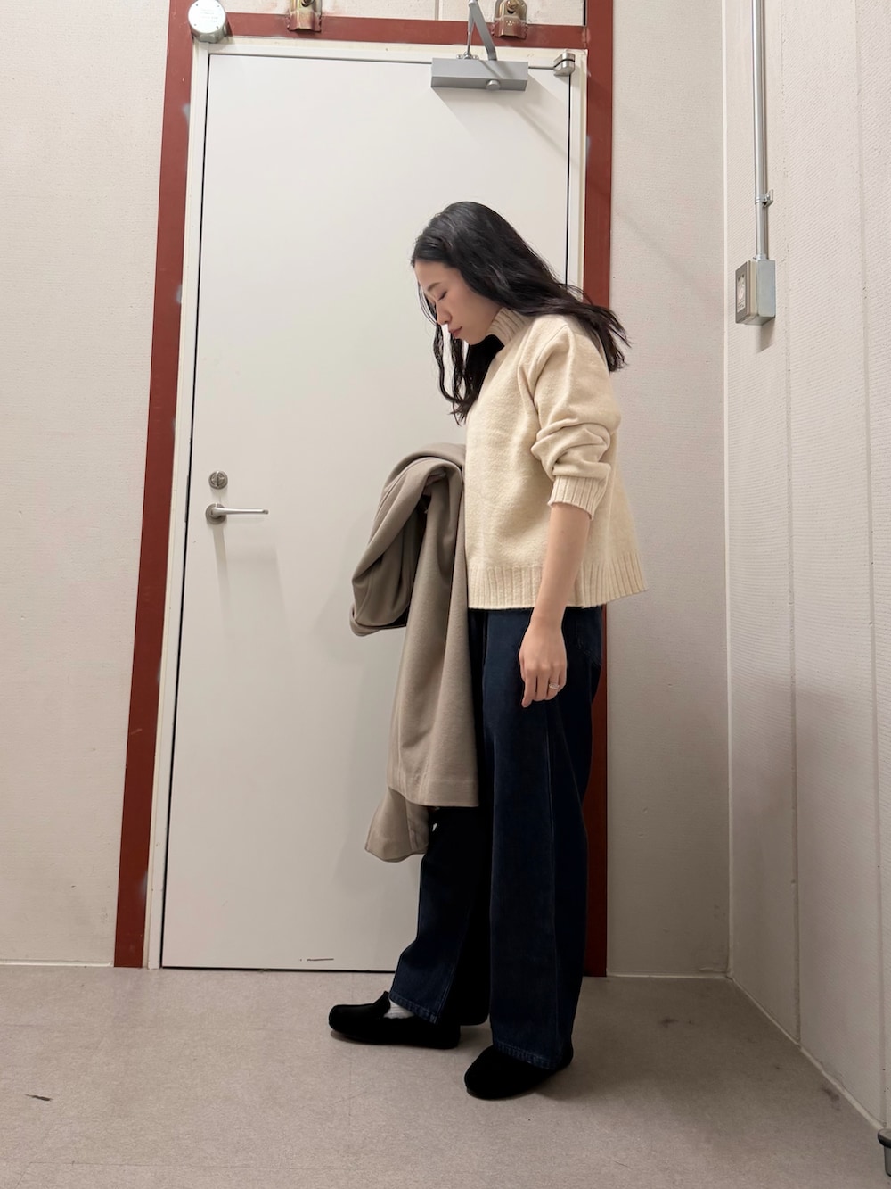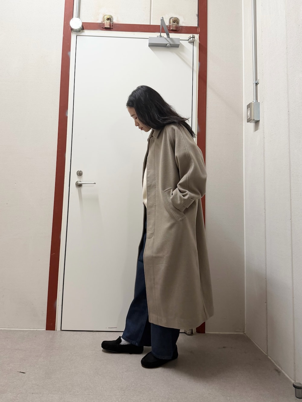 バルマカーンコート、Mサイズでちょうどいいです。中にニットを着込んでも余裕があります!
