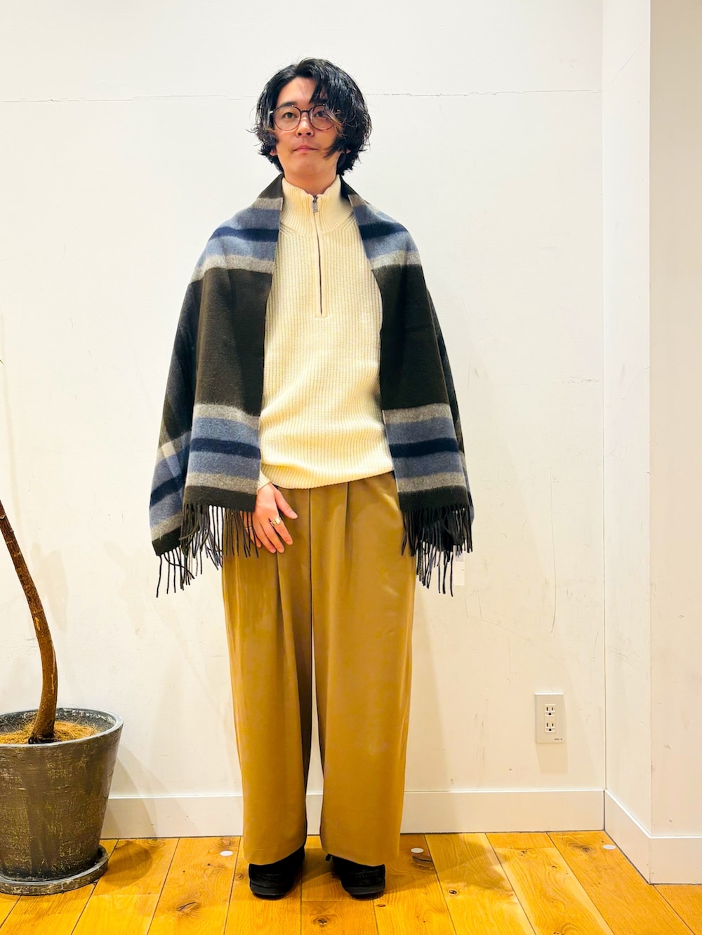Sonny Labelウールカシミヤチェックワイドマフラー- 着用カラー: