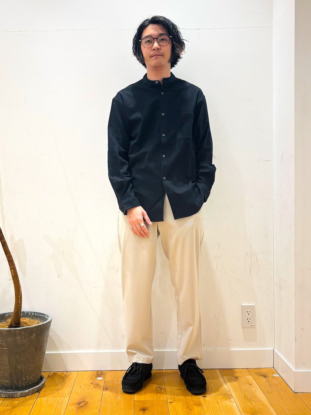 DOORS防シワ起毛ネルバンドカラーシャツ- 着用カラー: