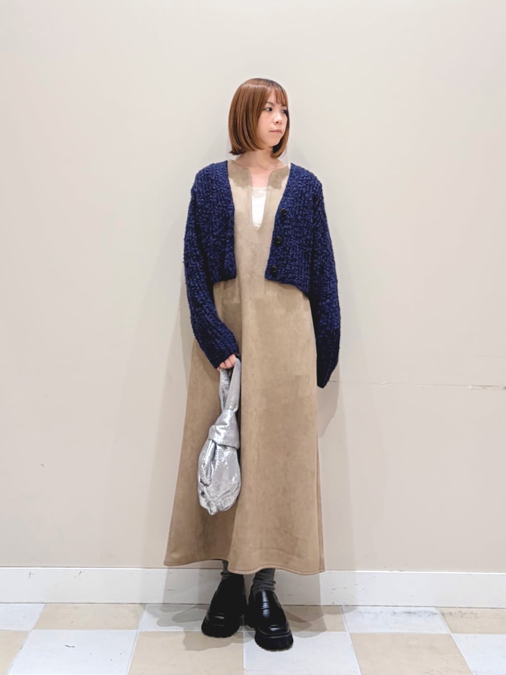 袖のデザインとカラーがポイントのルーズなシルエットのニットトップスにプリーツスカート、キャップでカジュアルコーディネートにしました!