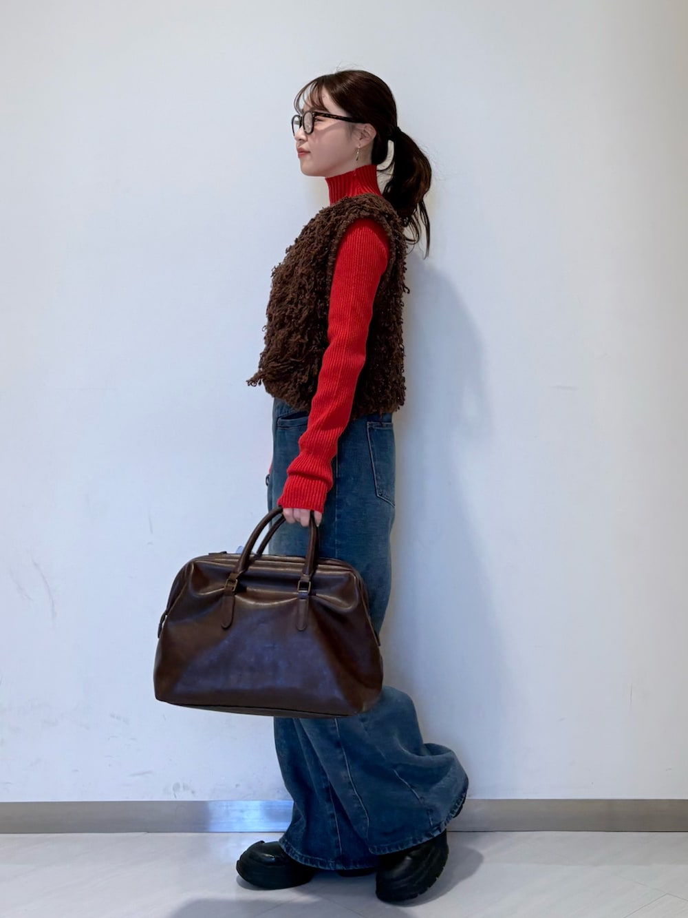 赤のタートルは単色じゃなくランダムなリブが細見えもさしてくれます✨