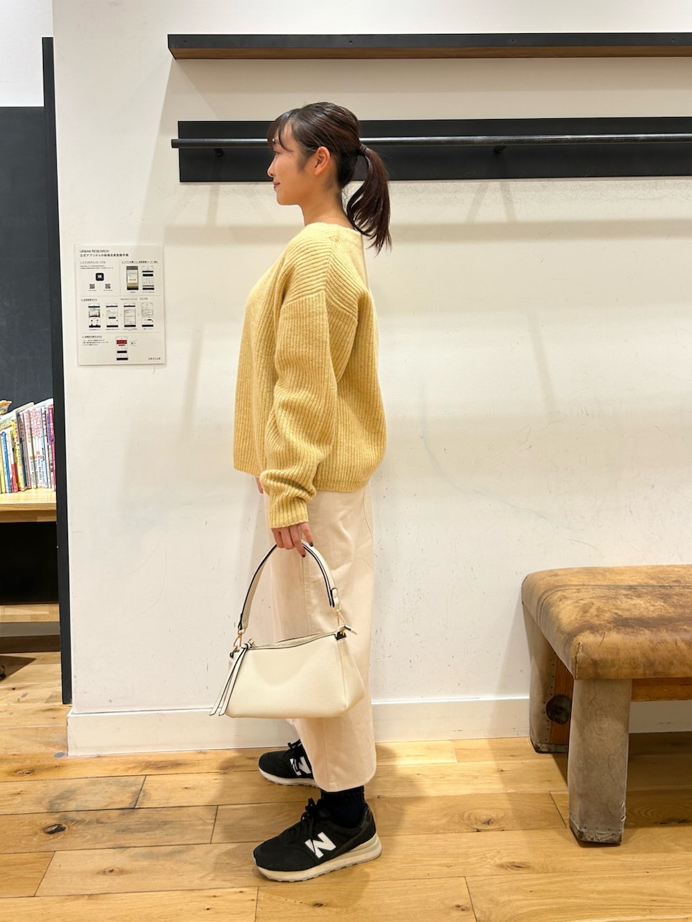 ハミルトンウール畦ボートネックプルオーバーは、温かみのある色使いで気分の上がるアイテムです。袖丈がやや長めなので、手元をクシュっと崩して着れてかわいいです。