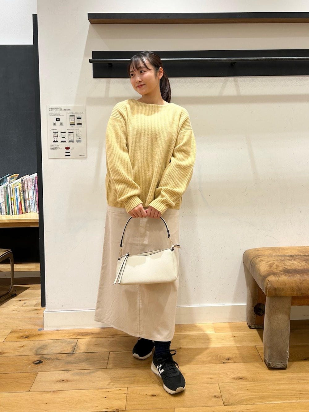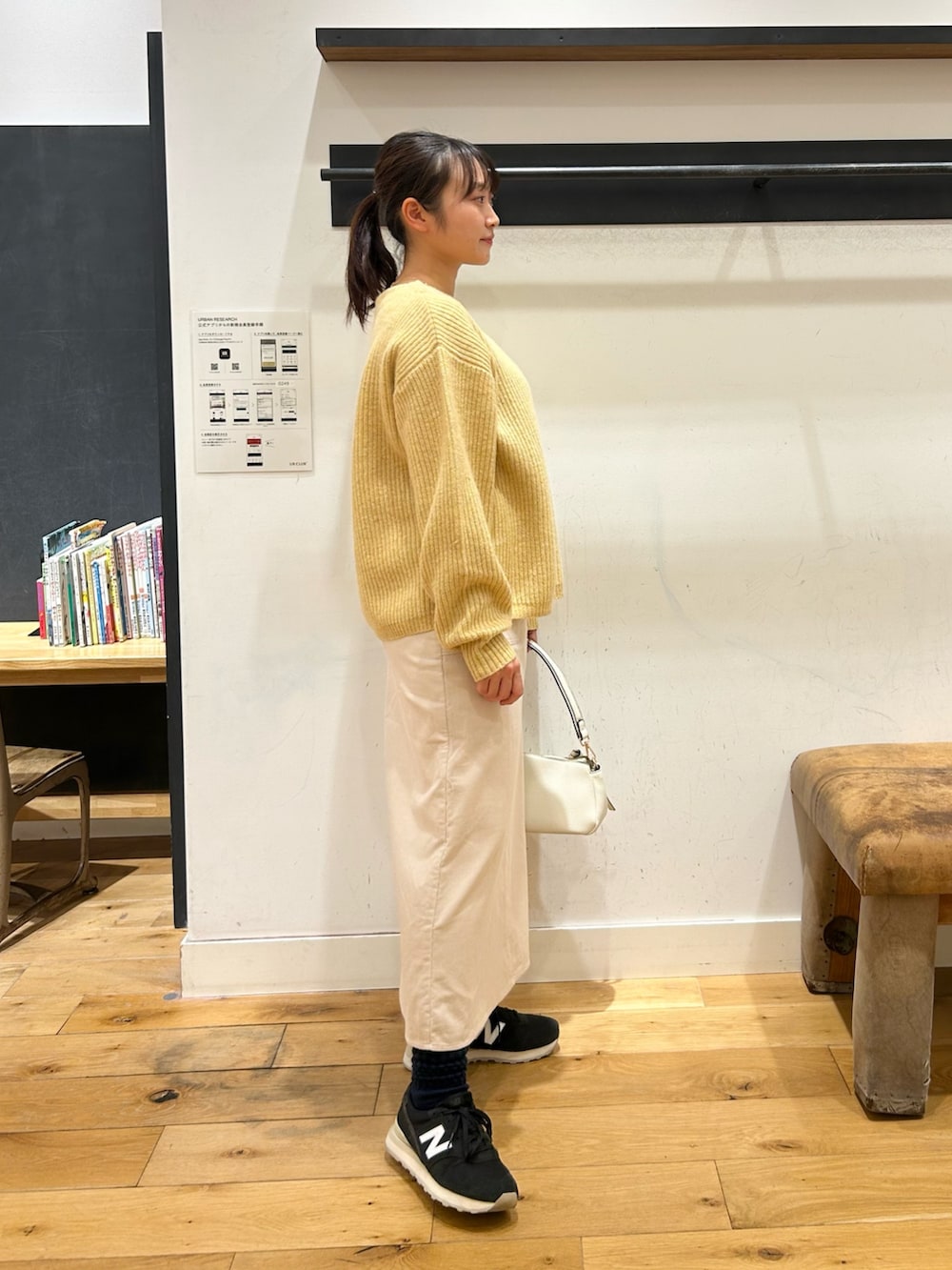 コーデュロイスカートは、身幅がワイドで穿きやすく、横から見たシルエットがスッキリな、 形優秀なアイテムです。少しボリュームを抑えたシルエットのスカートは、着膨れしがちな冬場のコーデの味方です。