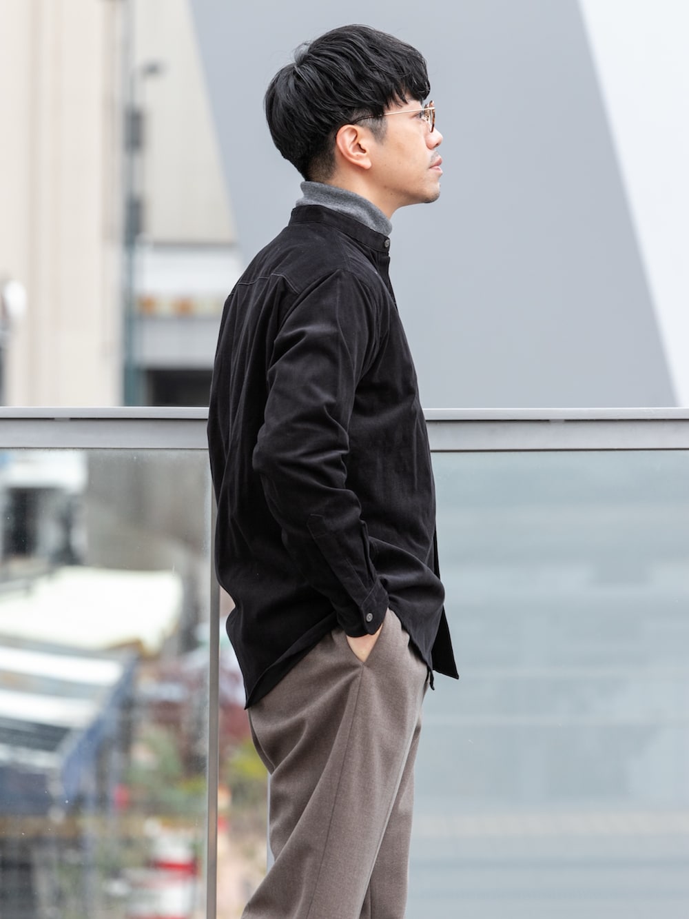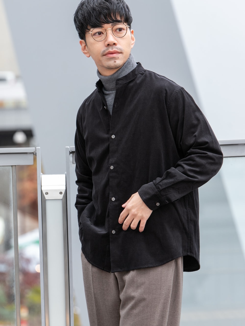 コーデュロイシャツはややゆとりがあり重ね着しても余裕があり着こなしを楽しめます。