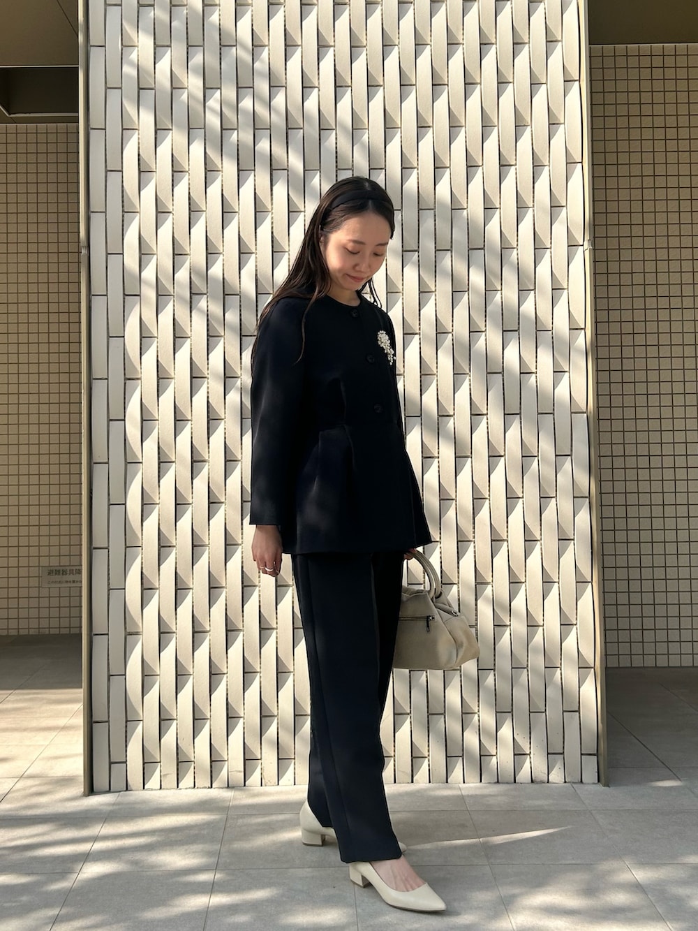ペプラムシルエットなのでウエスト位置が高く見えて