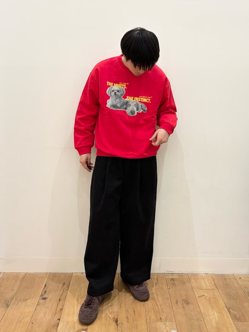 色味も赤で印象的で、胸元にdog graphicデザインがあって可愛さがあります!