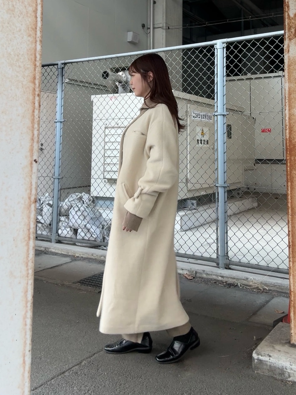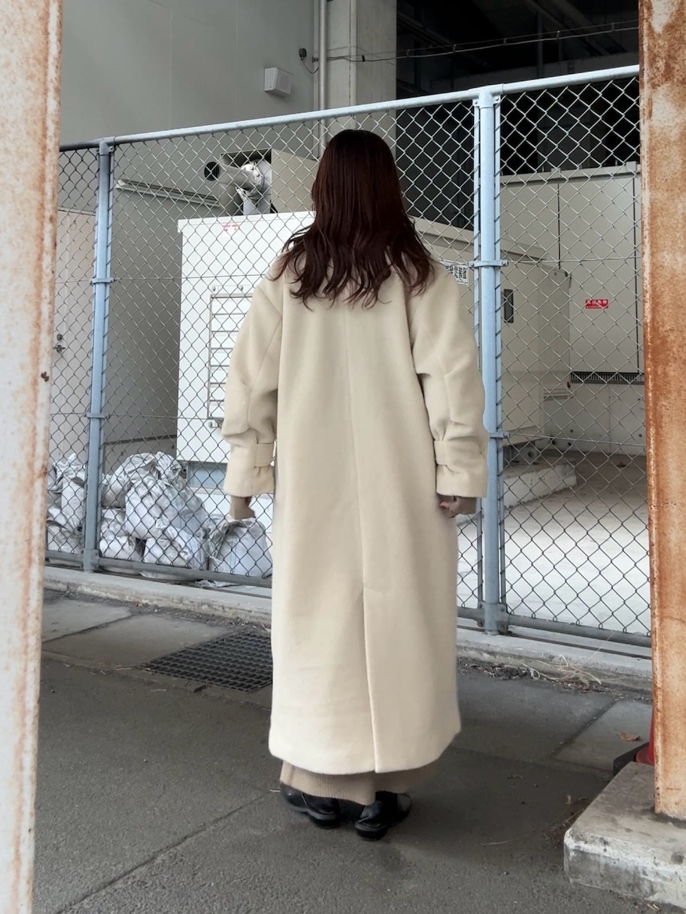 ボアのロングコートは襟がないので、フードなども出して着ていただけます^^