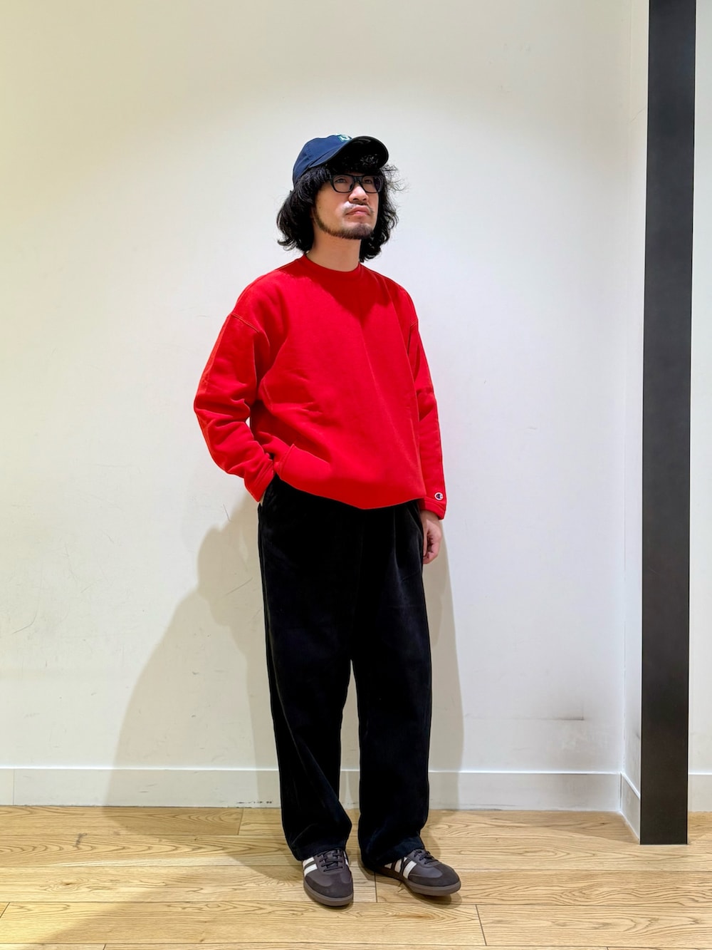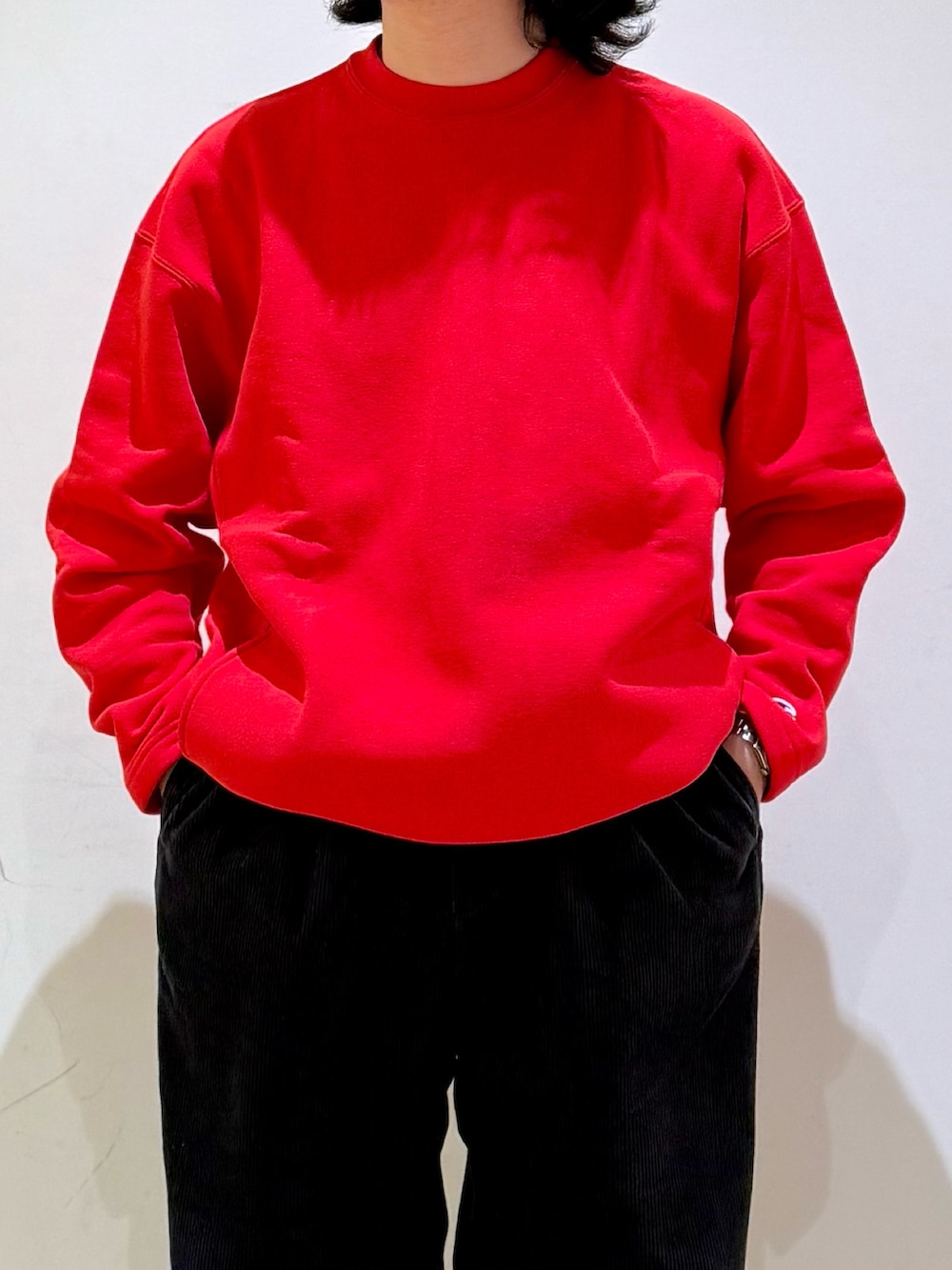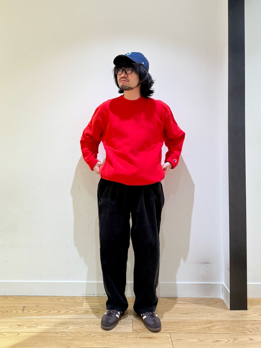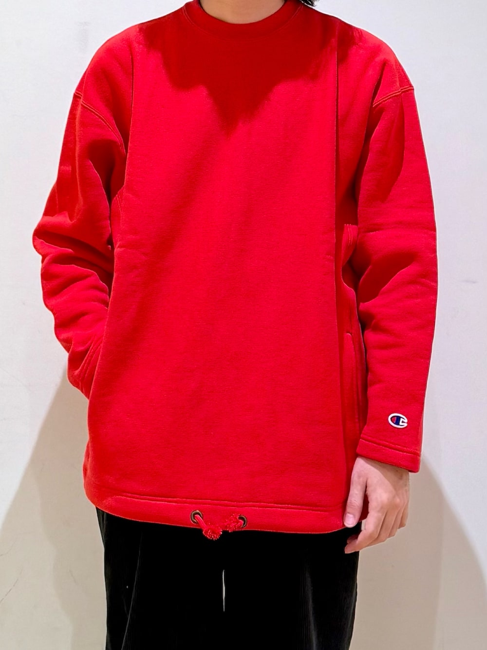チャンピオンの別注スウェットをメインにコーディネート。