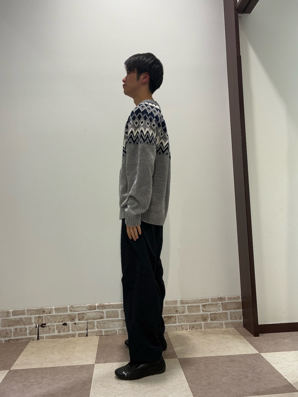 こちらのニットは冬ならではの柄を使って素材もポリエステルなので手入れも楽なニットです!