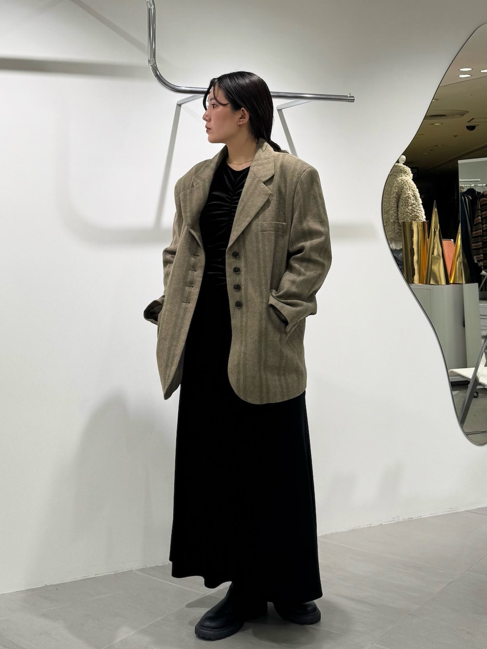 胸元の大胆なシャーリングが目を惹くベロアワンピース⚫️