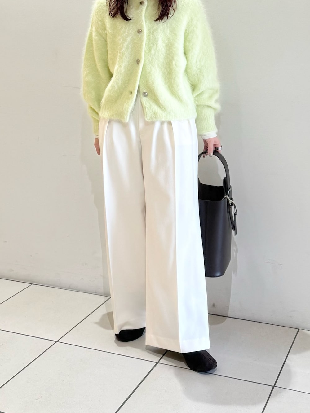 着丈がスッキリめなので、ワイドパンツはもちろん、ロングスカートやワンピースに合わせるのもお勧めです。