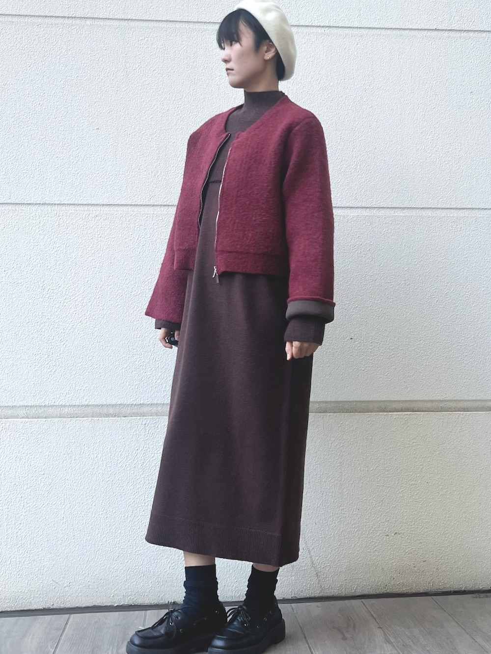 少し短めだけのワンピースなのでブーツに合わせるのがおすすめです!