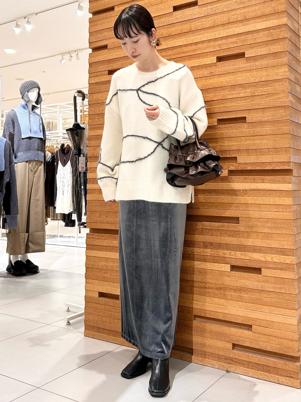 店舗でも人気のベロアスカートはMサイズを着用しています ♩