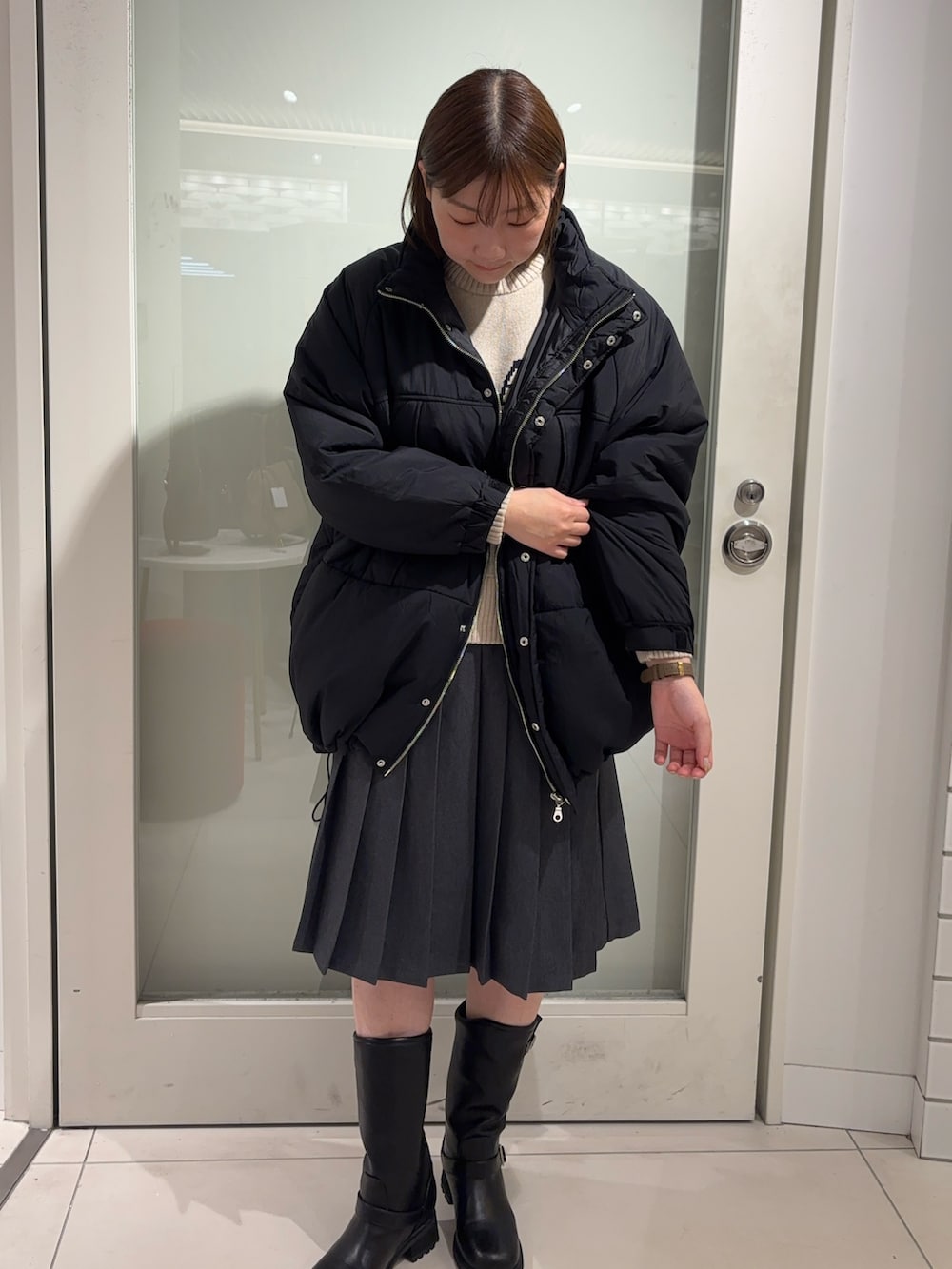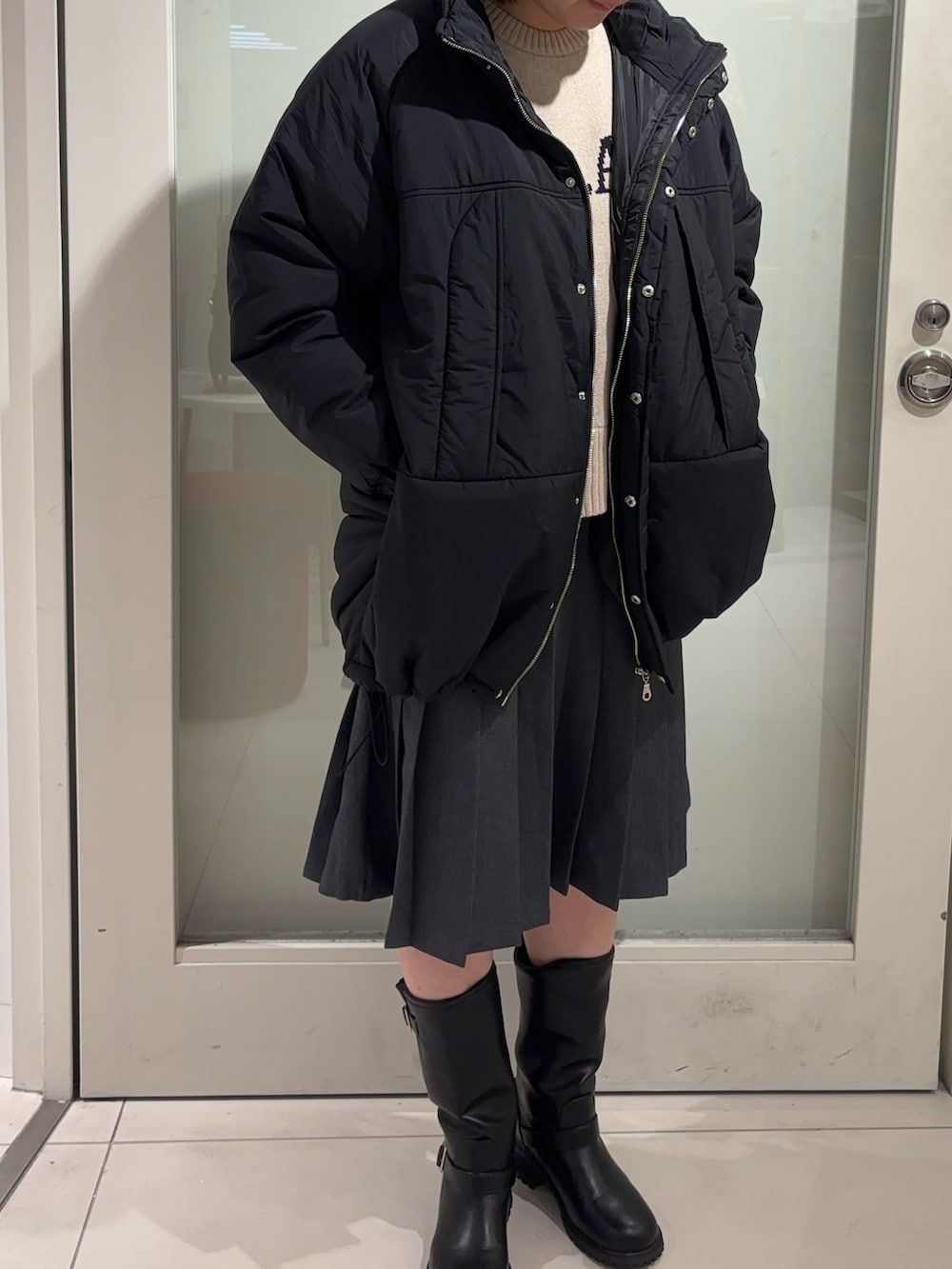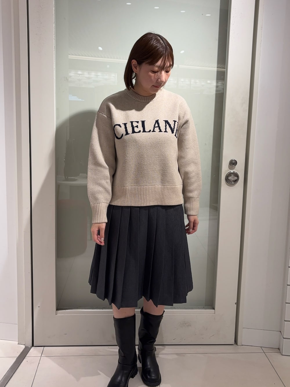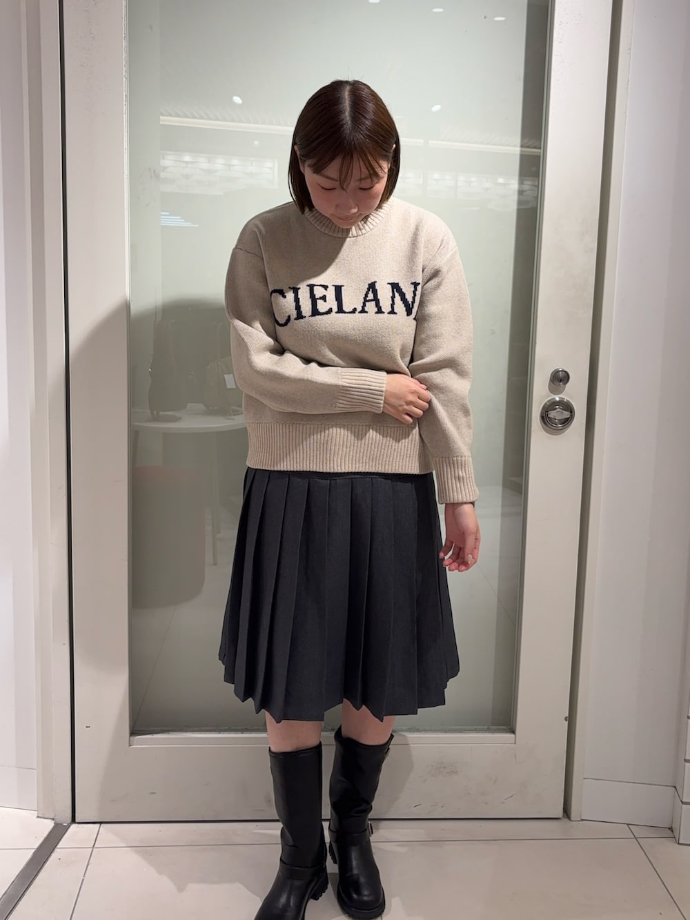 新作のロゴニットにプリーツスカートを合わせてトレンド感も出しつつカジュアルすぎないコーデに🤍