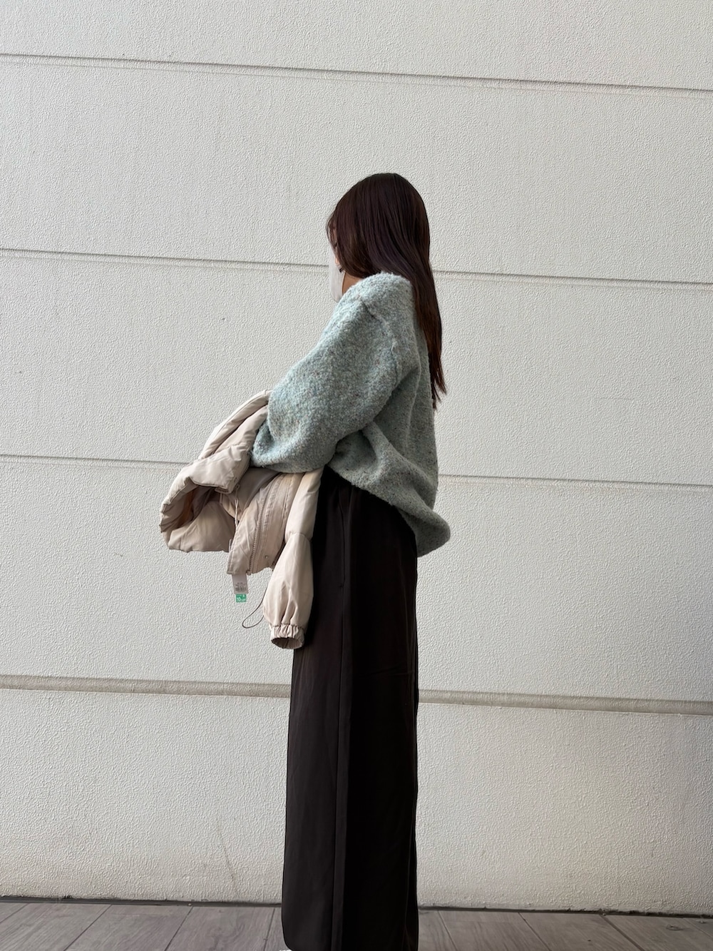 きれいなカラーのニットで冬の明るめコーディネートにしました🤍🩵❄︎