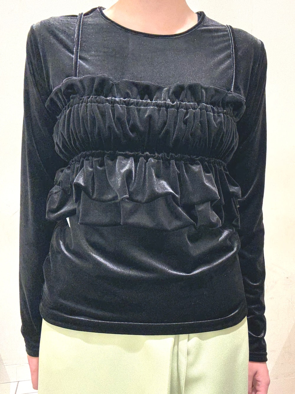 SENSE OF PLACE『洗濯可』フリルビスチェセットベロアトップ- カラー: