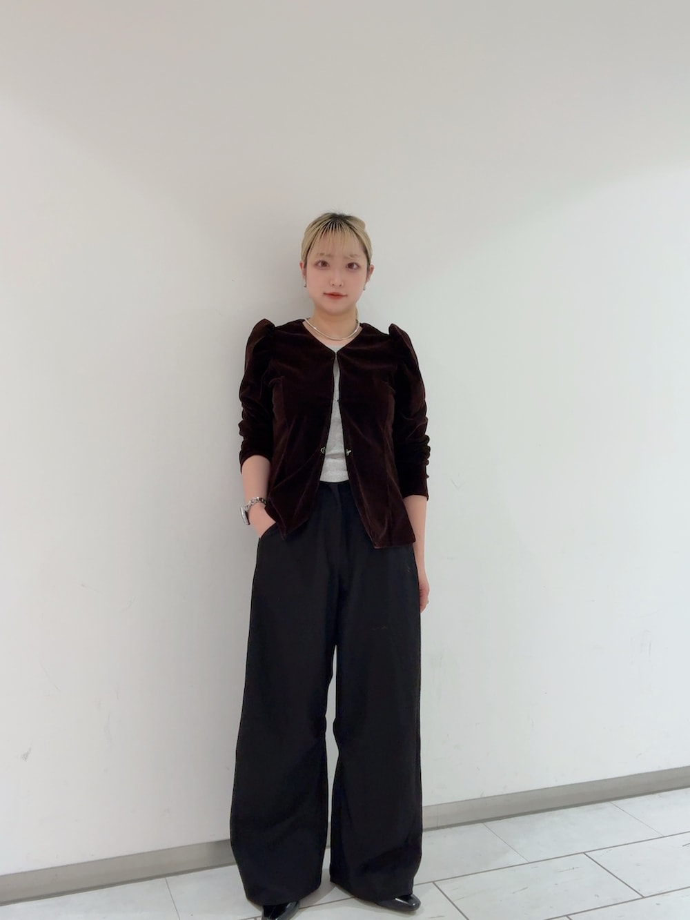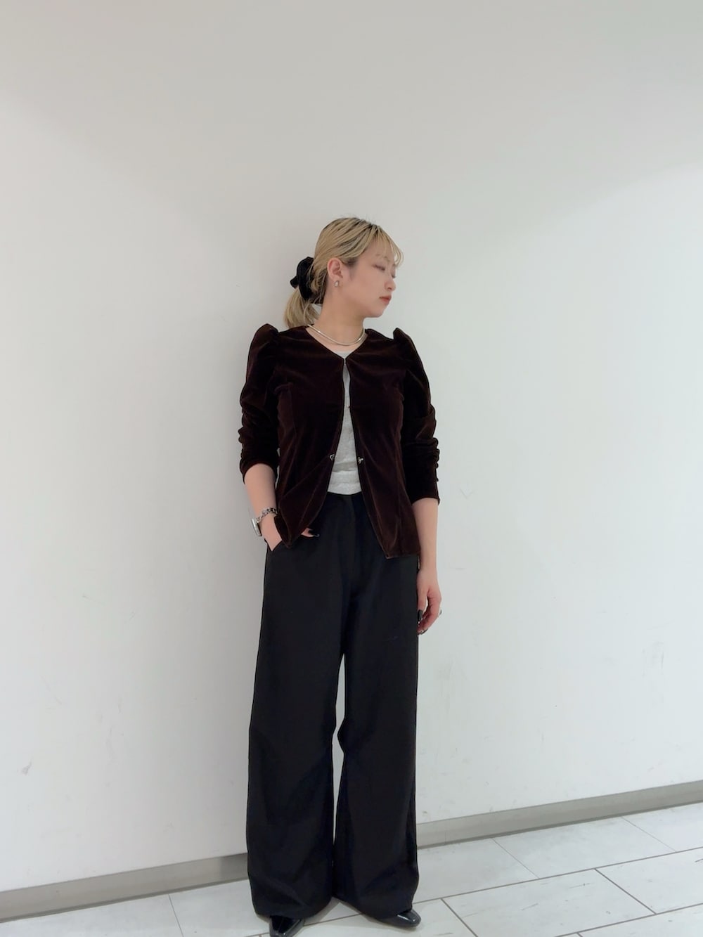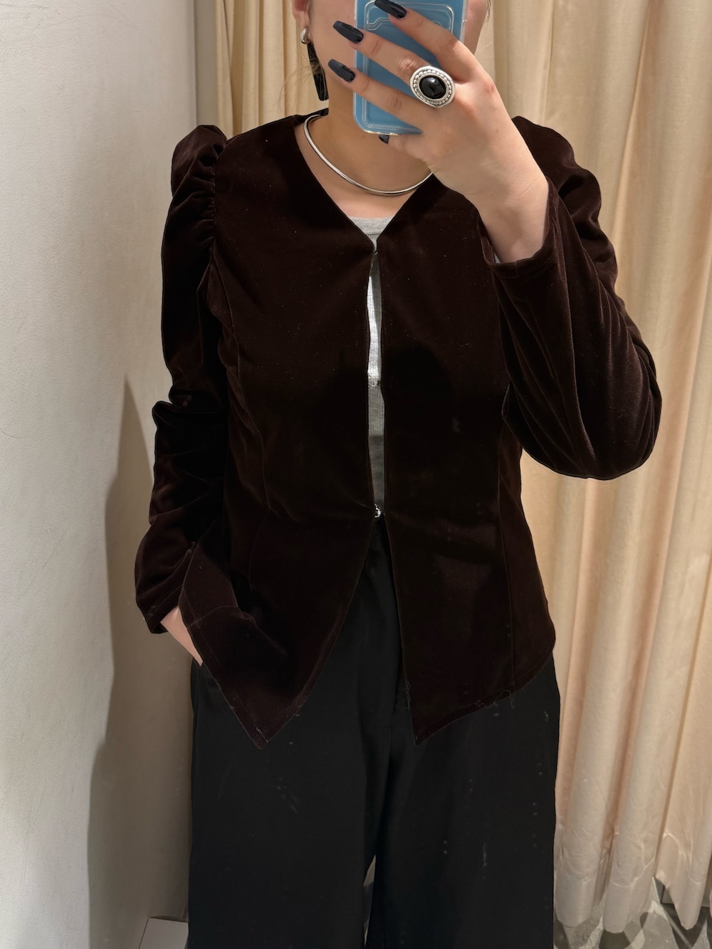 パフスリーブですが身幅スッキリ✨ベロアトップス✨忘年会やお食事にも綺麗目な合わせで着ていただけますᯓ★ ^ ̳ට ̫ ට ̳^
