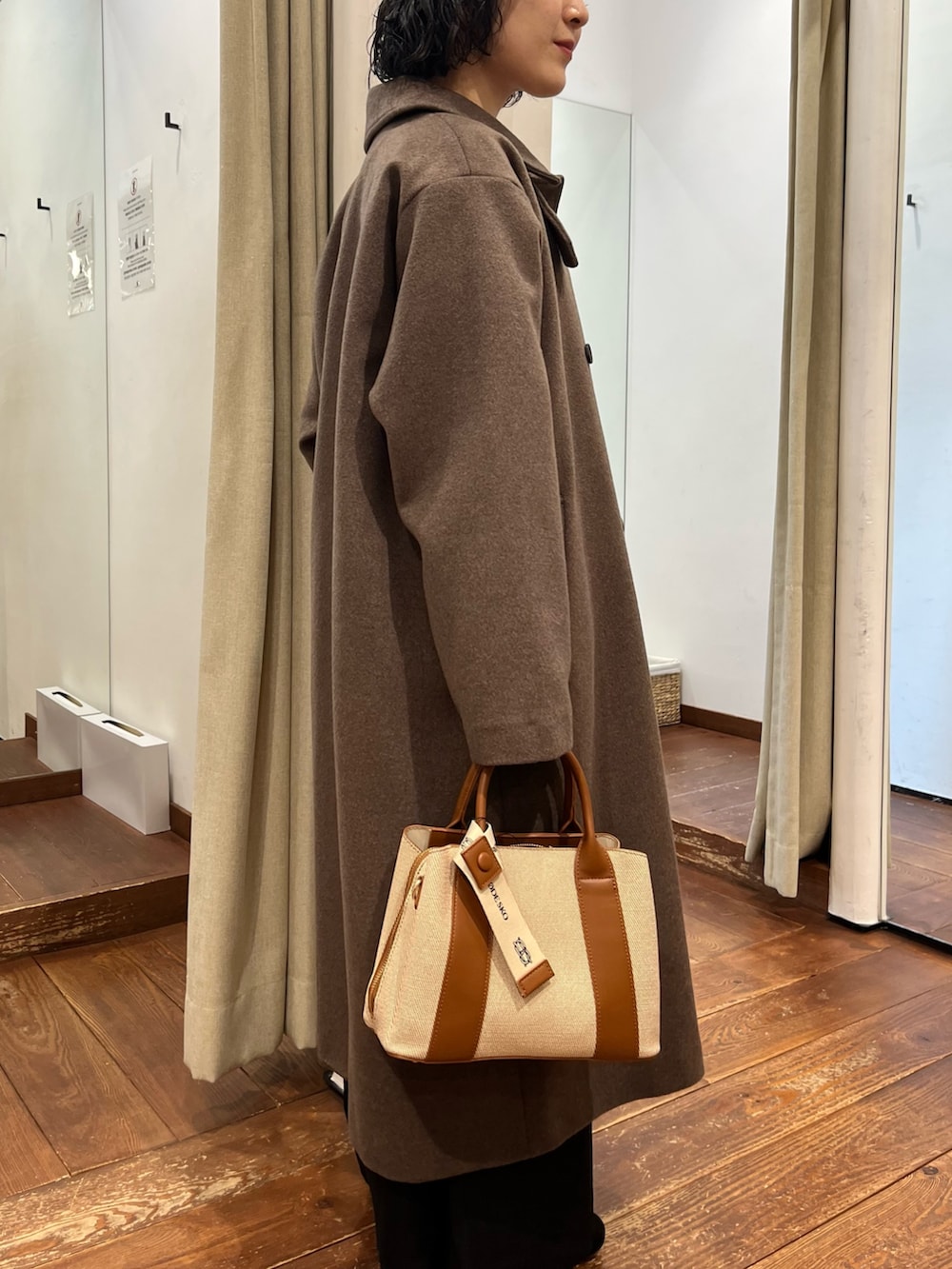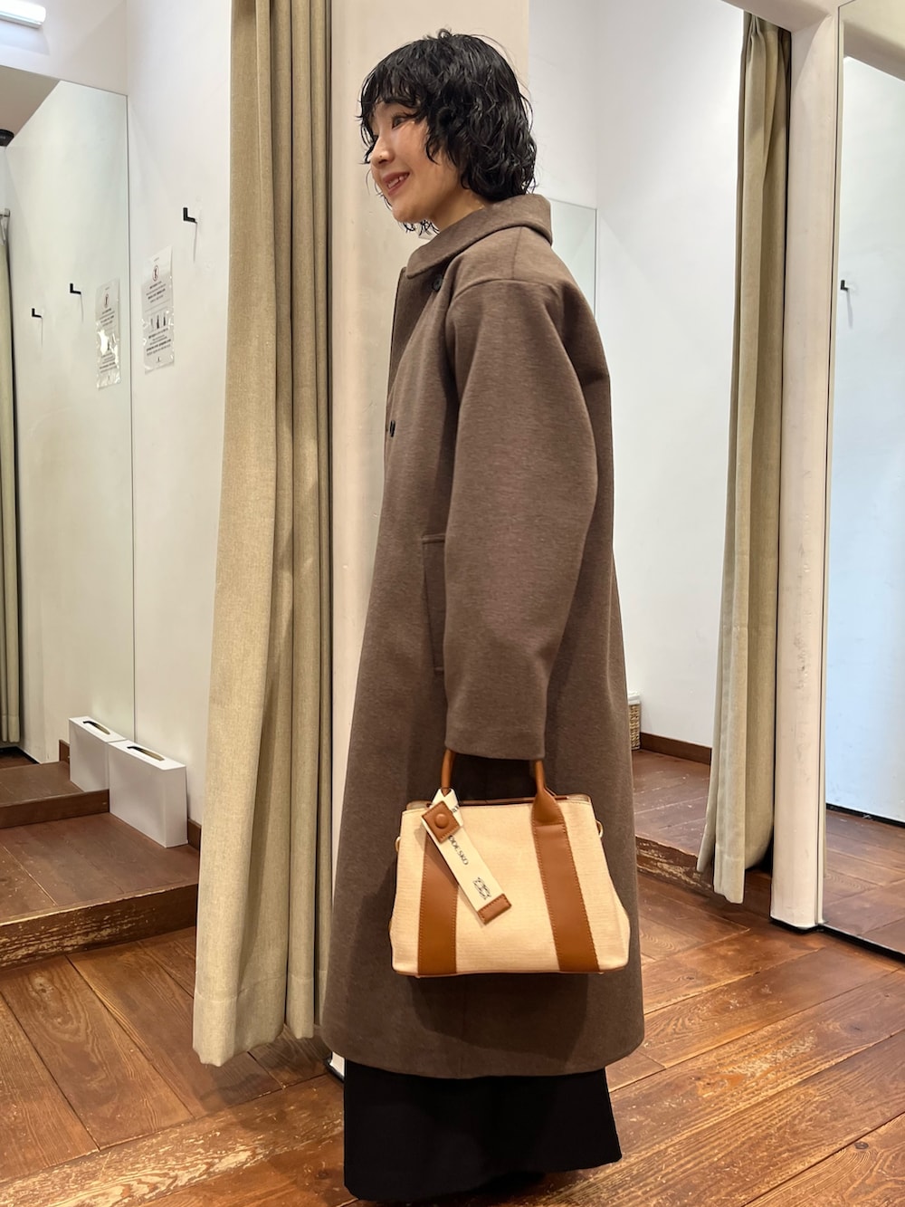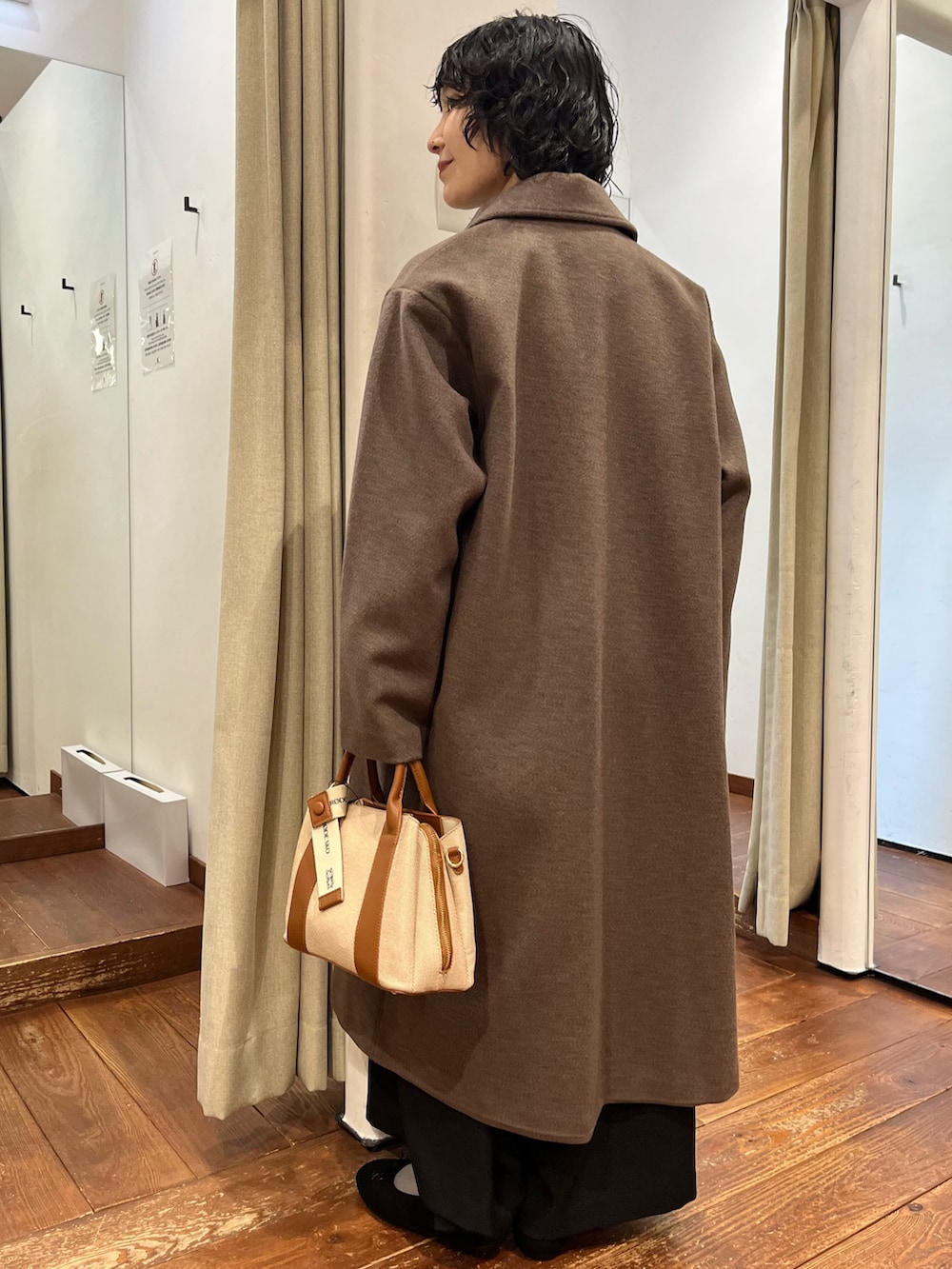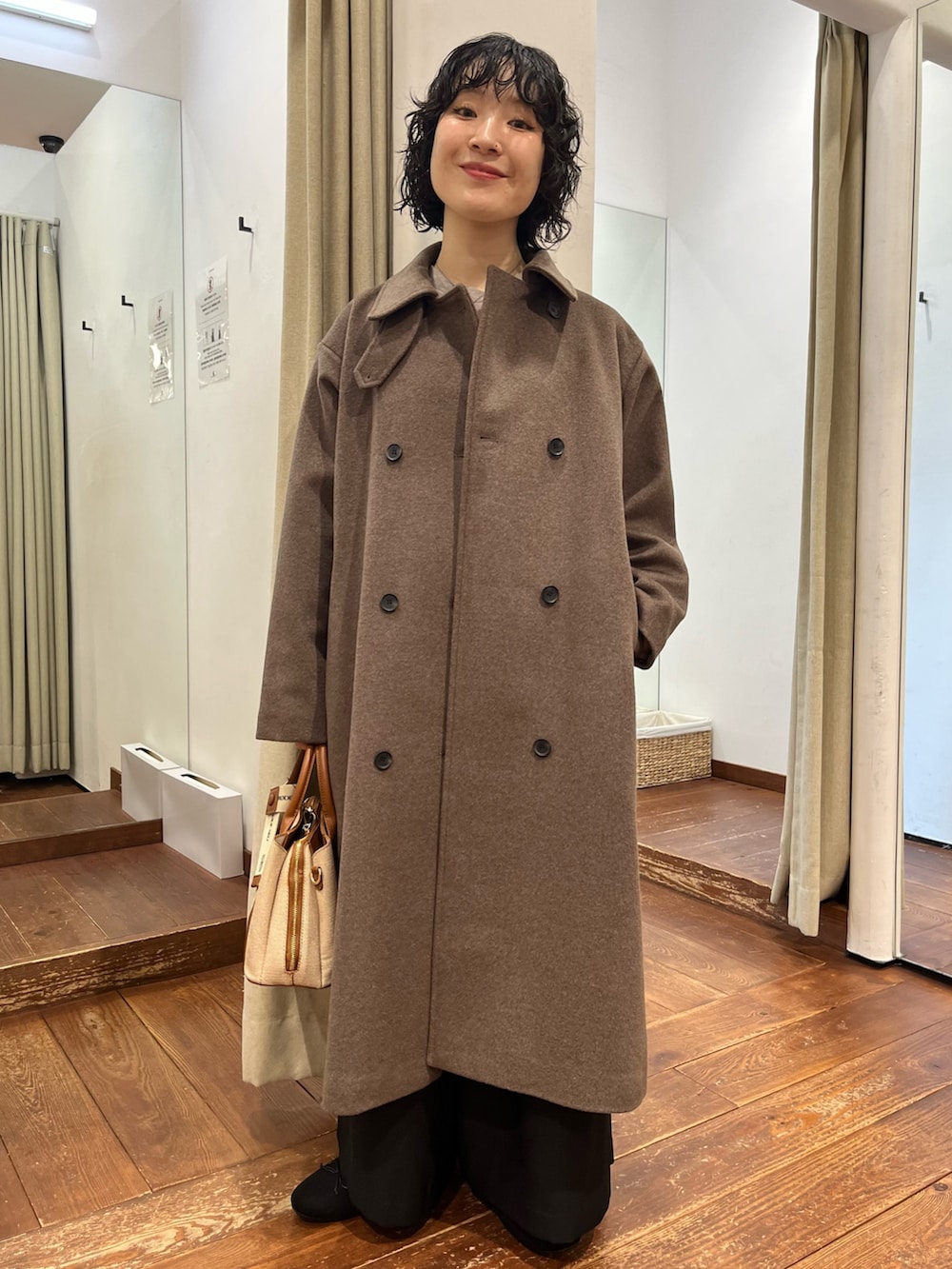 上質なウール素材を使用した生地は、重厚感がありますが見た目より軽いです。フロントはダブルの仕様でクラシックでクールな雰囲気がありますが、マキシ丈で女性らしさも。