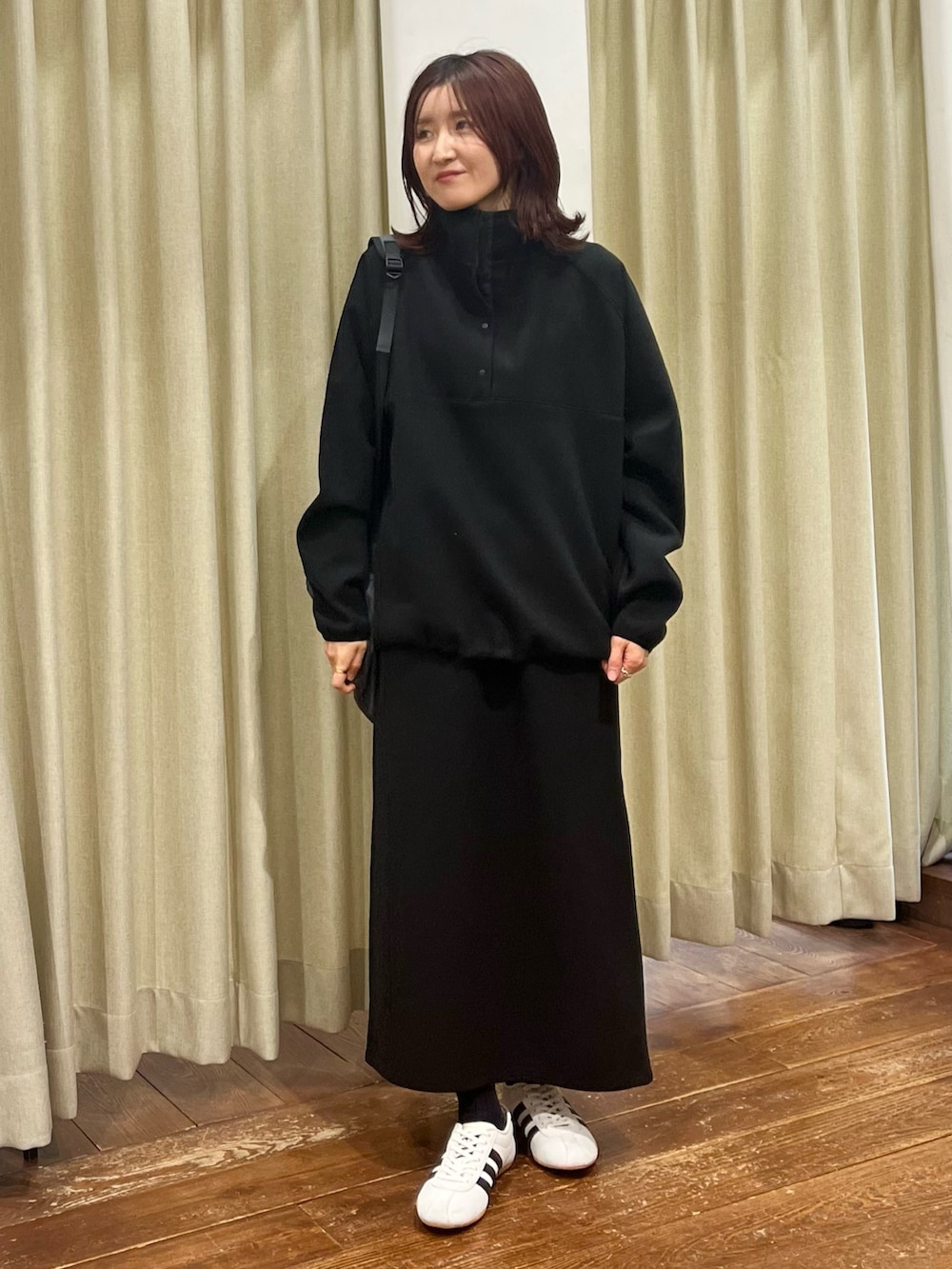 トップスとスカートはEKALのアイテムをセットアップで着用しました。起毛感のある素材ですがカジュアル過ぎないのでタウンユースにもぴったりです◎