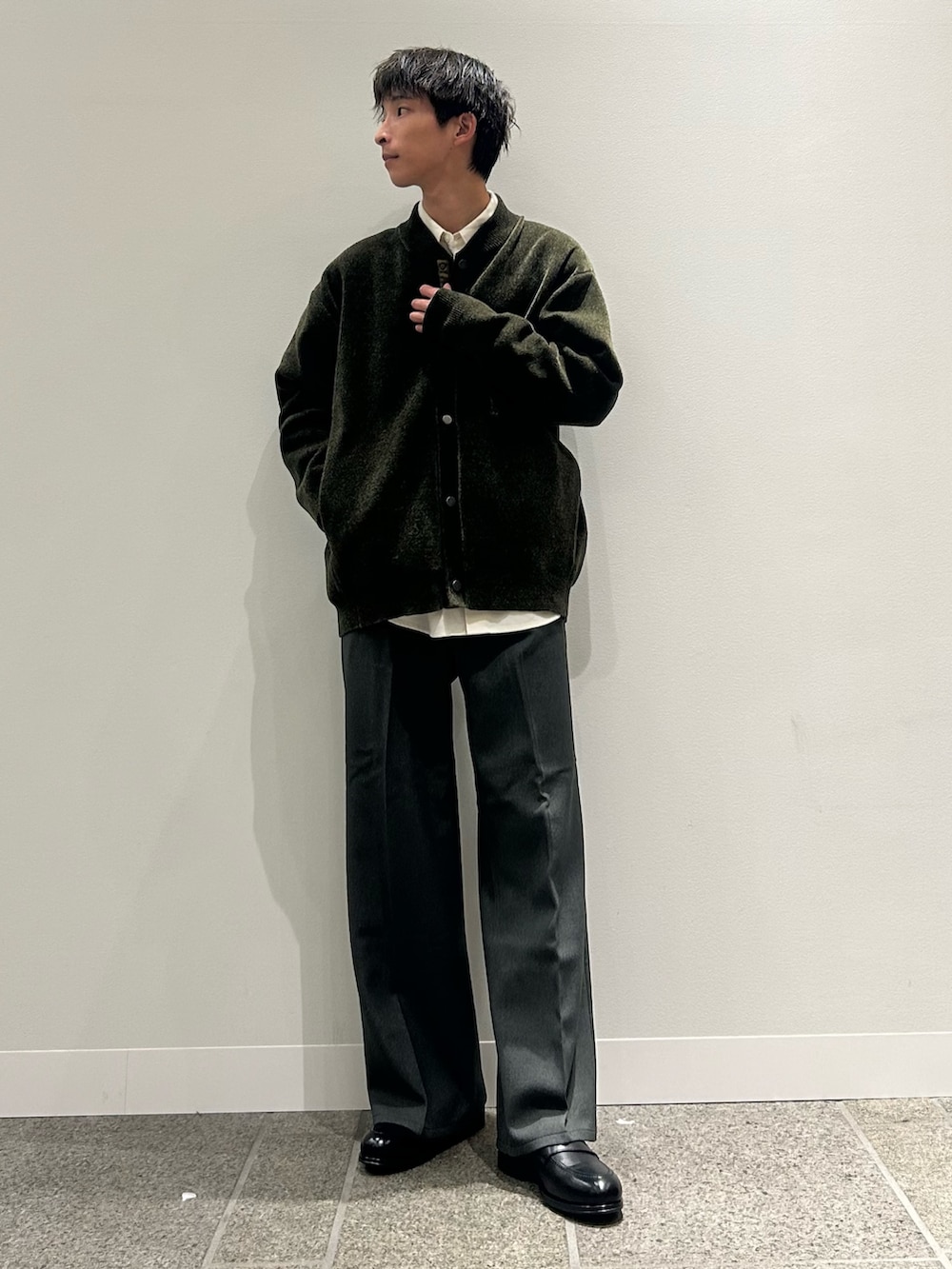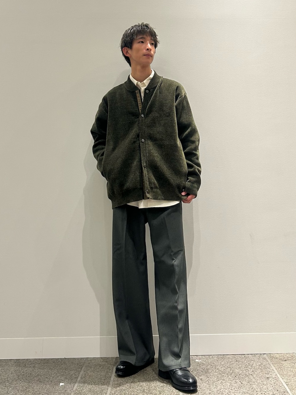 王道で定番だけど、カーディガンの程よい光沢感やシャツの起毛感が品を出してくれます。