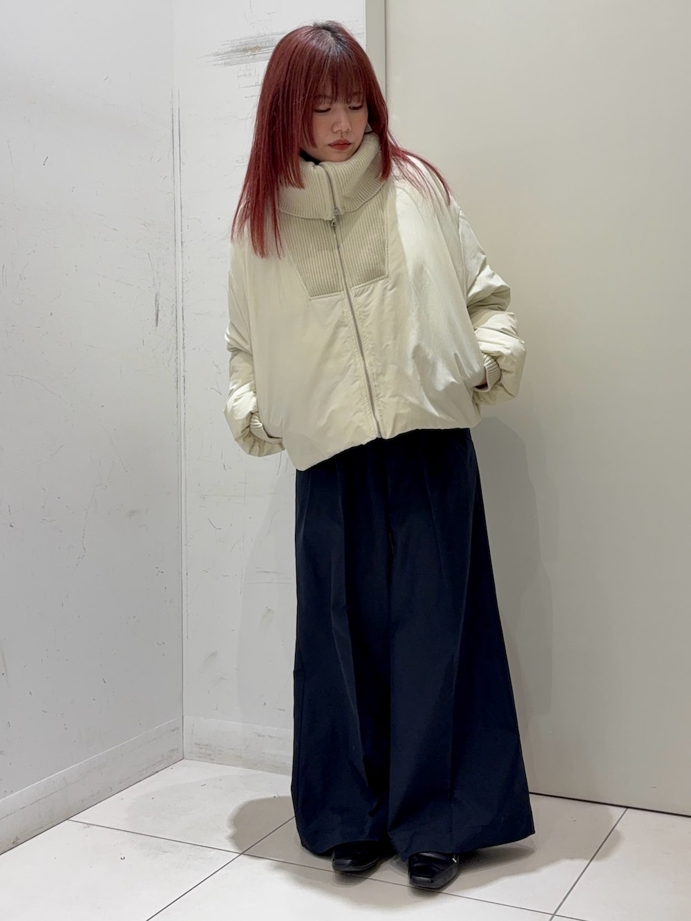 ショート丈ダウンなので、ハイウエストのスカートやワンピース合わせても◎