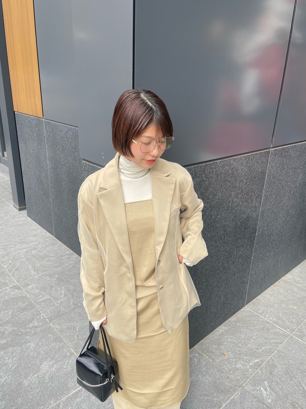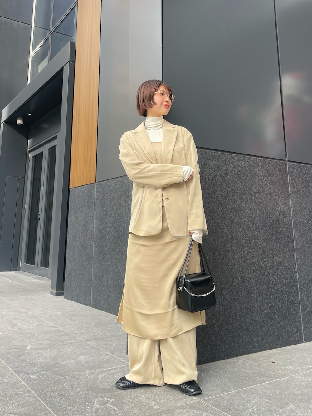 サテンのワンピでお洒落見え3ピースセットアップに✨