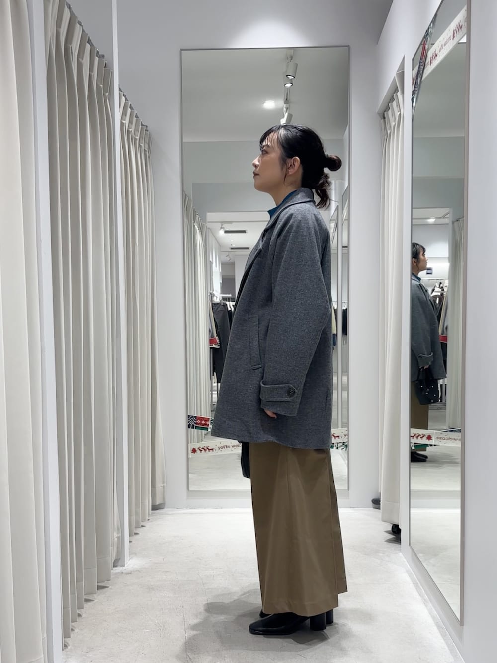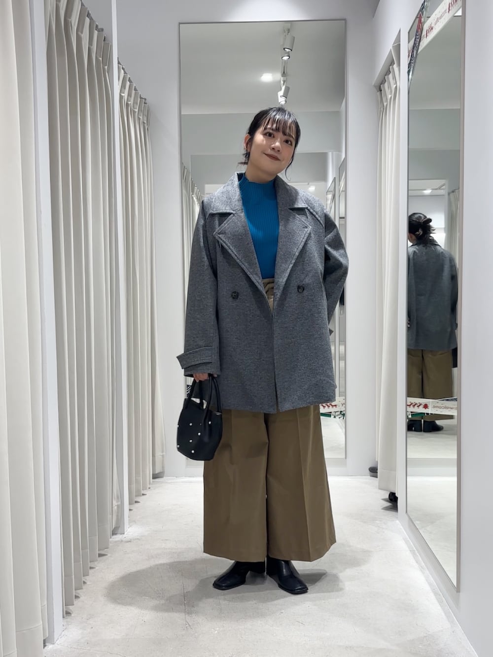 今季人気のミドルコートに、鮮やかなブルーニットを合わせてみました🫐