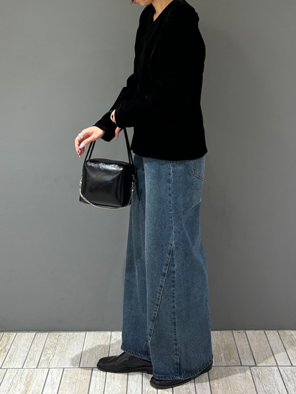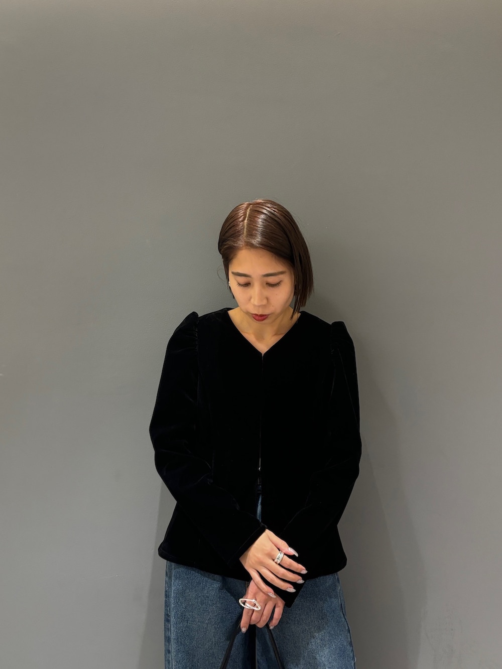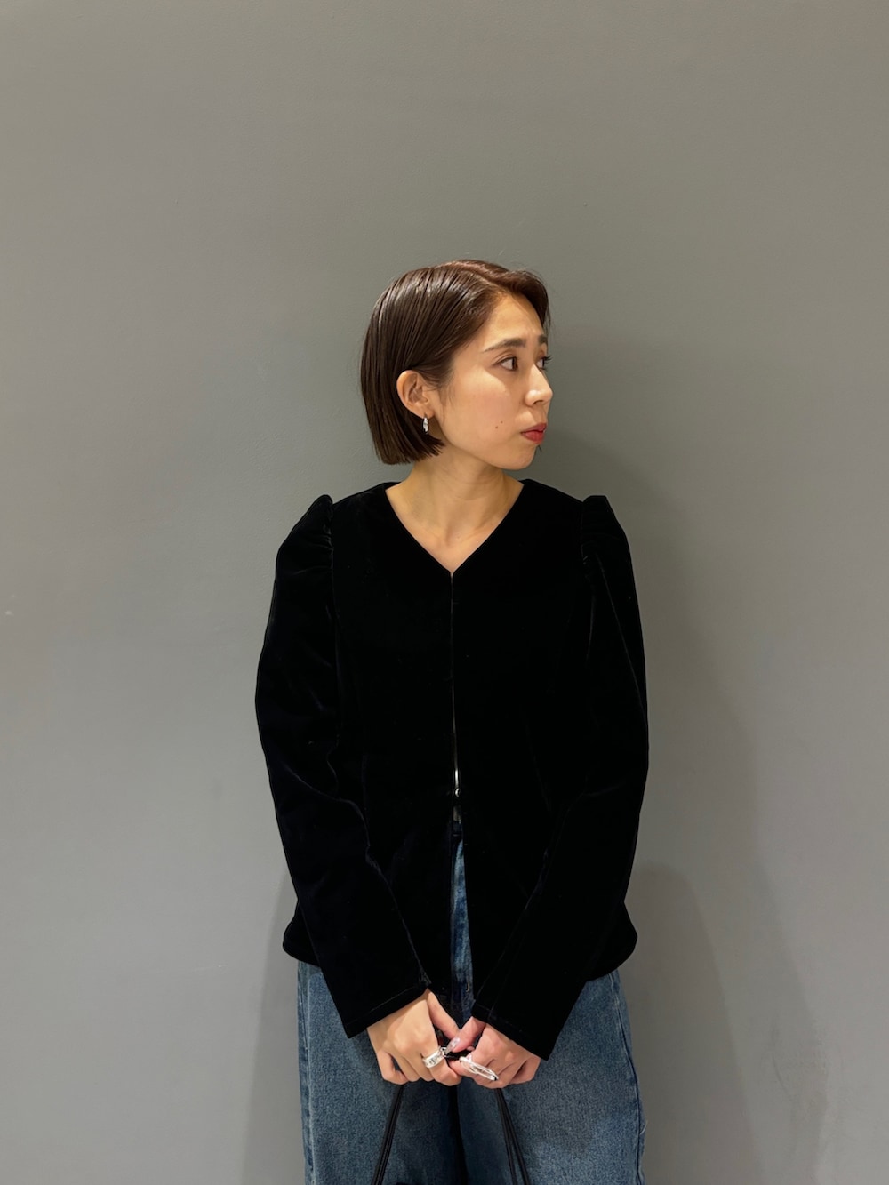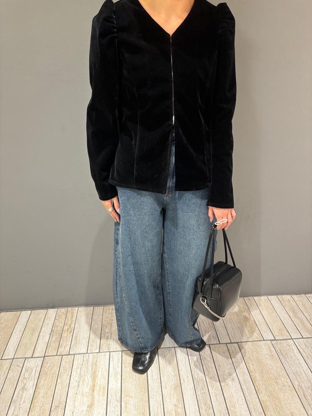 パフスリーブベロアブラウスは前を開けて着るのも個人的おすすめです♡