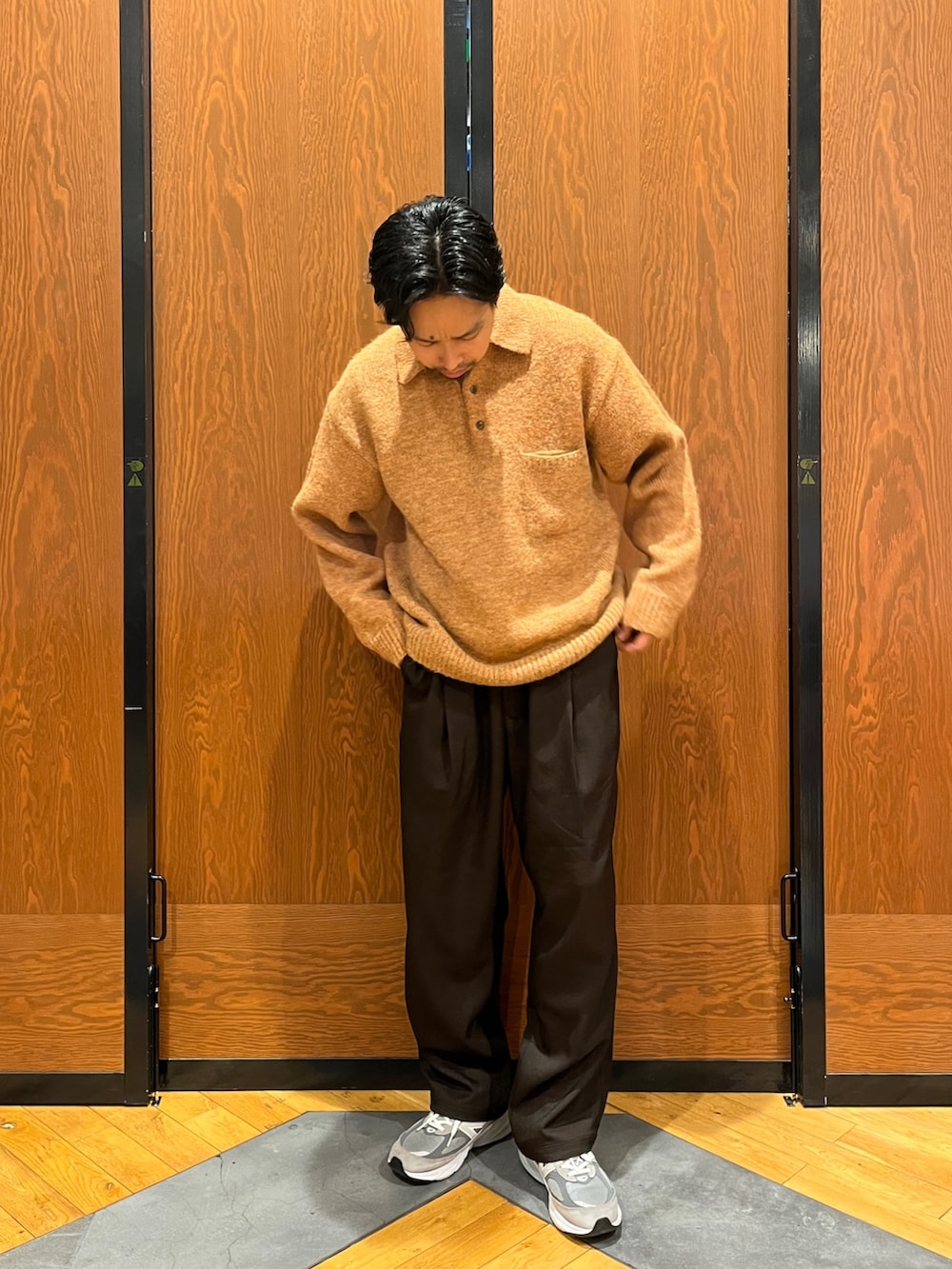 今時なニットポロですが、シャギーなのでアクセントになります。