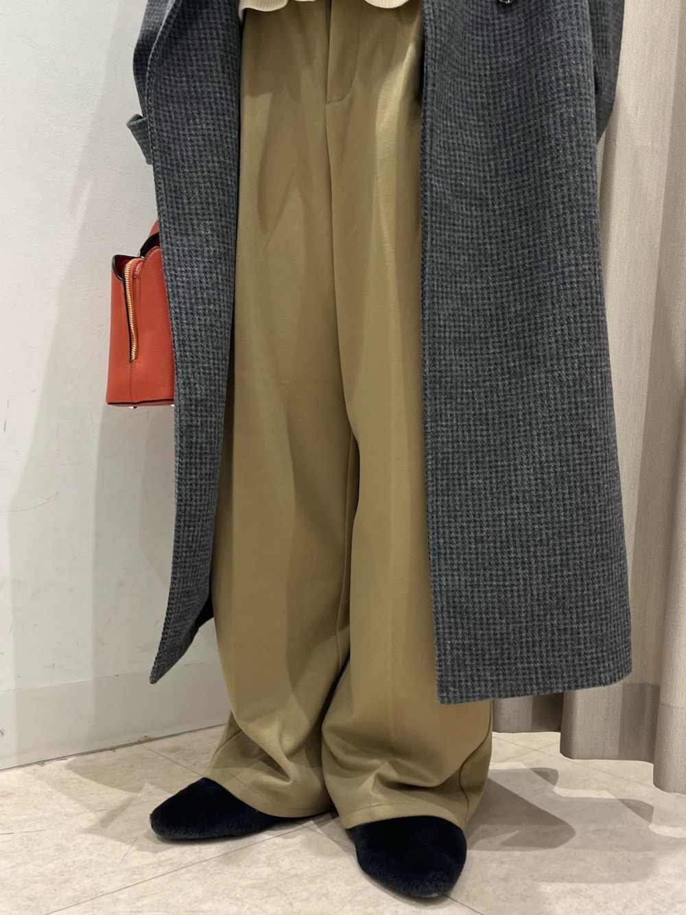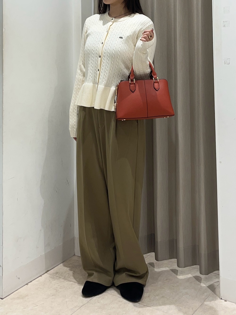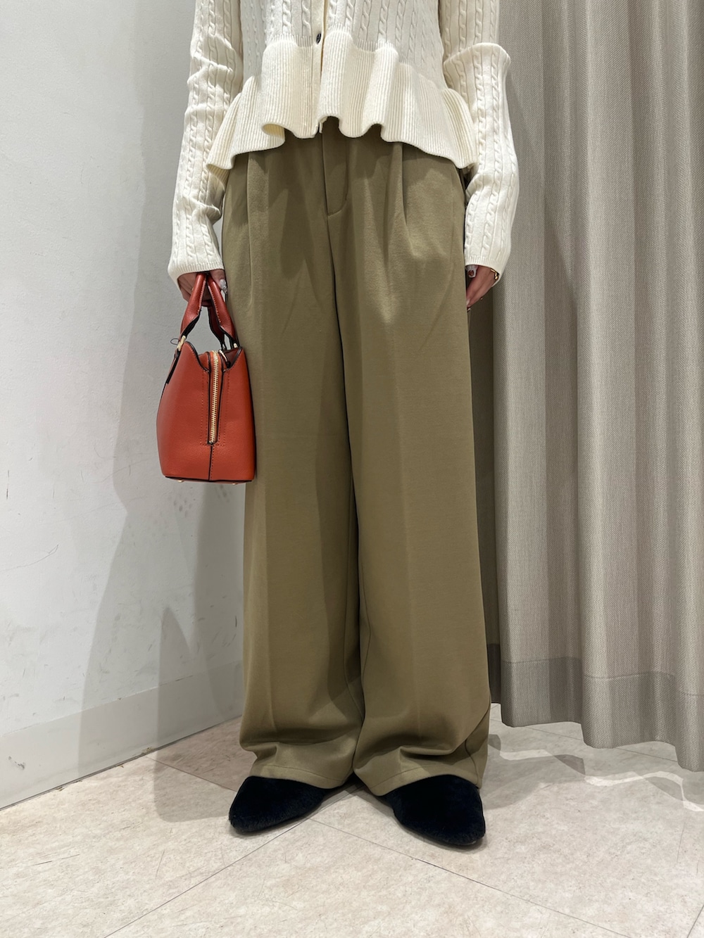履きまくっているジャージースラックスをメインに、再入荷したケーブルセーターを合わせてきれいめにまとめました☁️