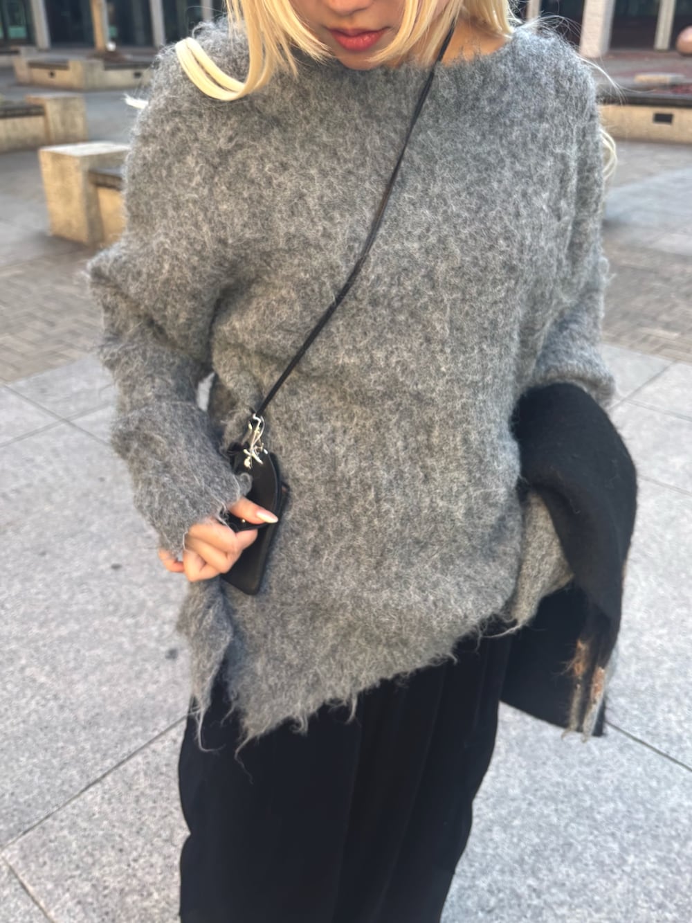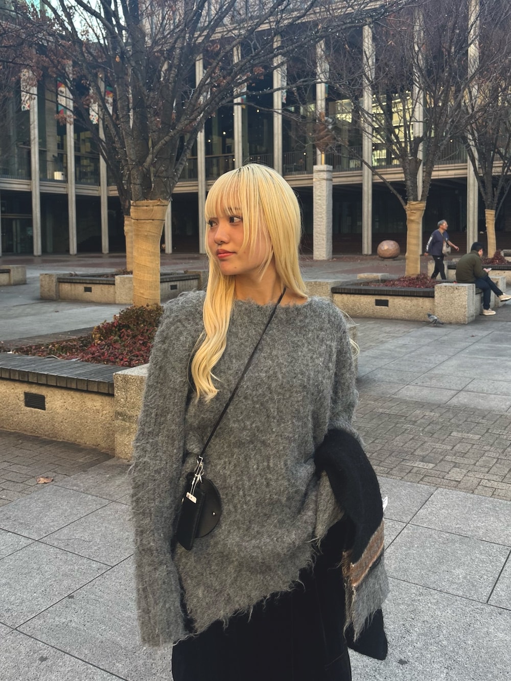 シャギールーズリブニットはゆったりとしたサイズ感なのですが、首周りがスッキリ空いているので着膨れ感なくしていただけます!