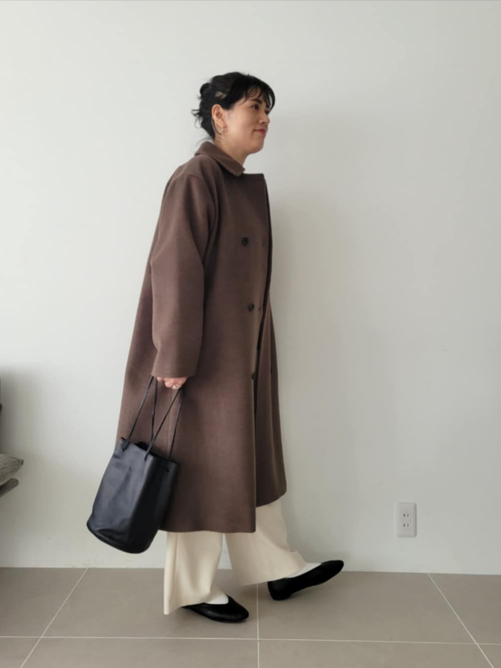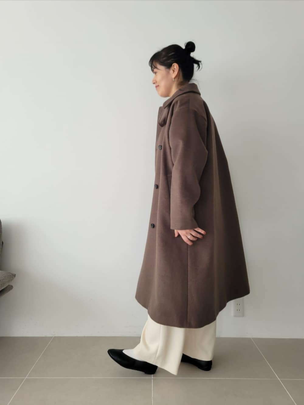 パンツはワイドで脚のラインも出にくく