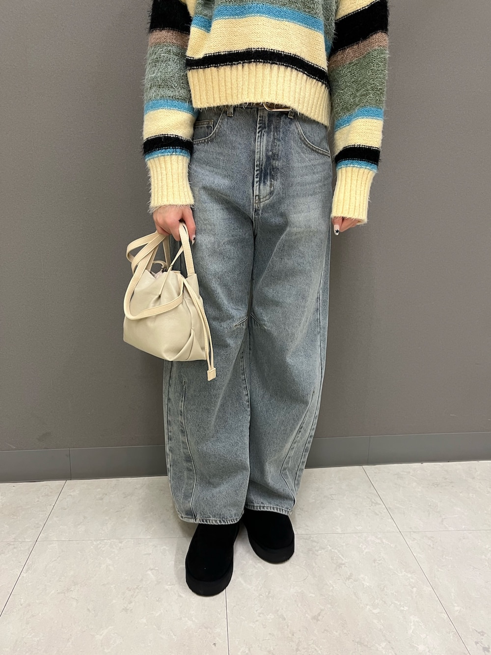 明るめのトーンのボーダーニットを合わせることで、重くならないアクセントカラーをプラスできます🔥