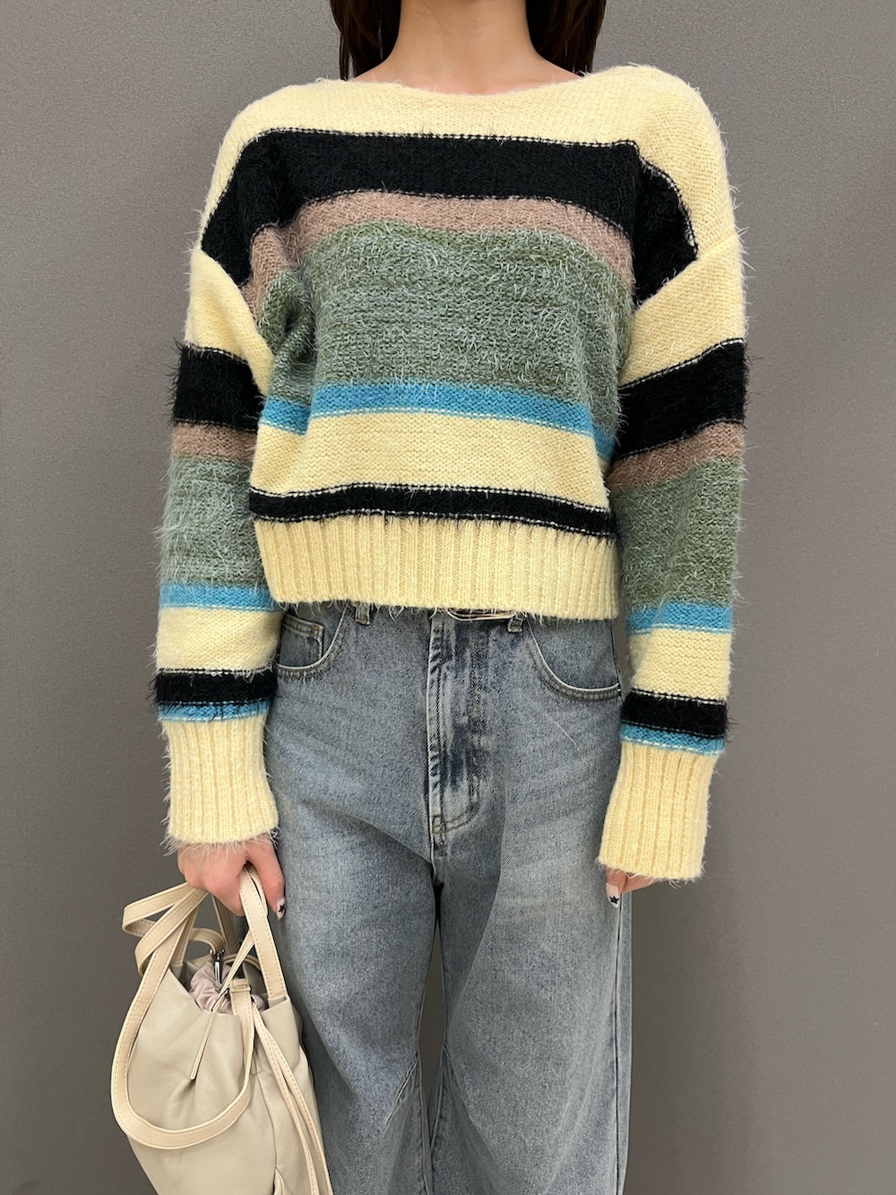 SENSE OF PLACE『洗濯可』シャギーハイショクボーダーニット- カラー: